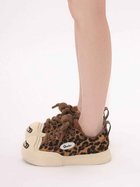 "Ouder 'Smiler' New Heighten Thick-Sole Cute Leopard Print Big Head Board Shoes