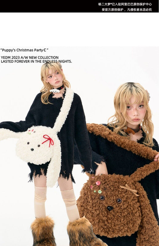 Yang Er Teddy Plush Puppy High-End Single Shoulder Crossbody Bag Furry Round Bag