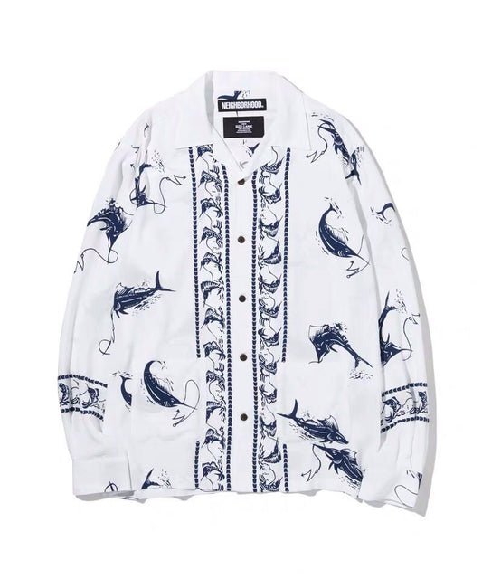 Self-made Neighborhood 20SS Hawaiian Swordfish Shirt Long Sleeve Open-Front Loose