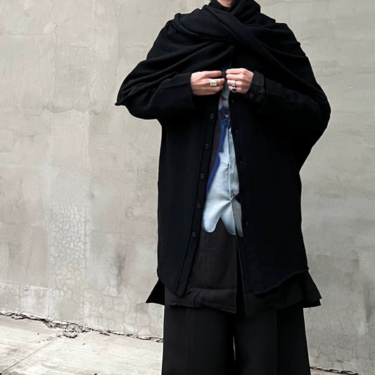 Self-made Yohji 21SS Knitted Scarf Cape Pure Wool Shawl Cardigan Outerwear
