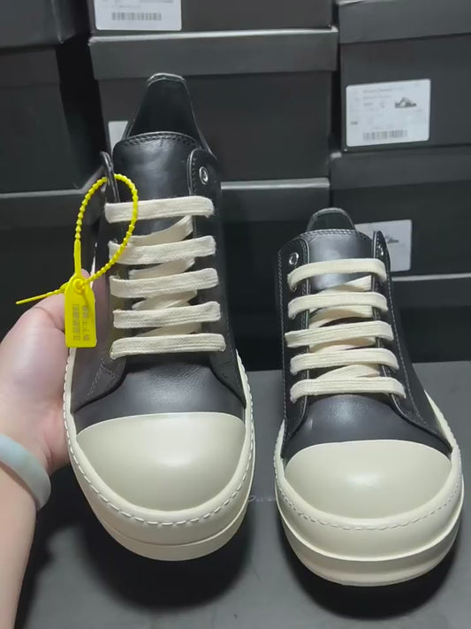 Self-made Rick Owen Low-Top Leather Platform Sneaker RO Dark Elevated Sole Casual Shoes