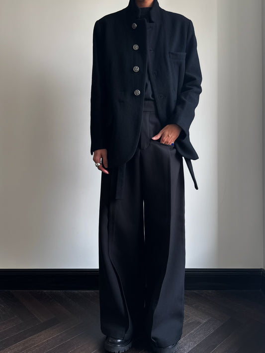 Custom-made Yohji Yamamoto Dark 100% Wool Blazer Hexagram Silver Buttons Jackets
