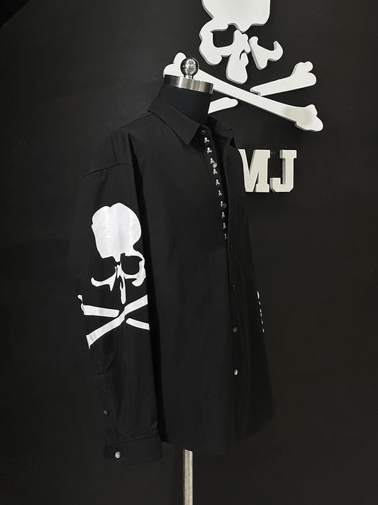 MMJ MASTERMIND Dark Skull Print Shell Button Oversized Couple Casual Shirt
