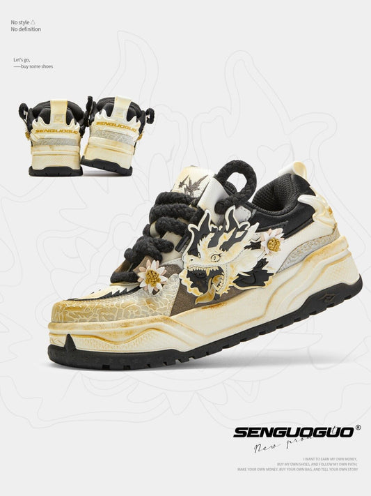 Dragon New Year Edition Men's Shoes 2024, Vintage Distressed Thick Sole Sneakers