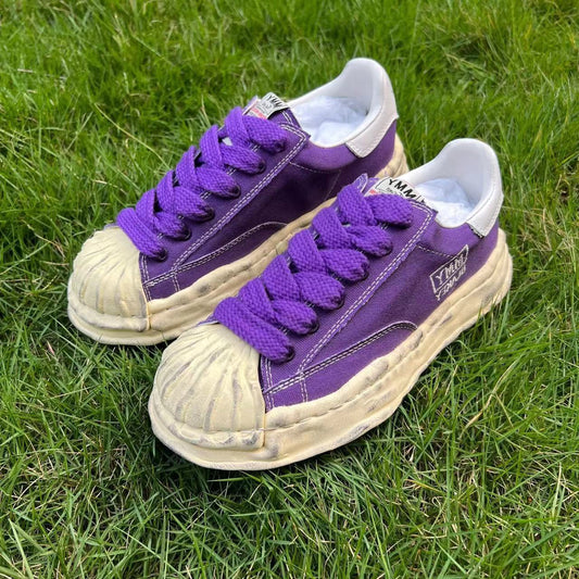 MMY Seashell-Toe Shoes Thick-Soled Unisex Dissolvable Sneakers/Distressed Canvas