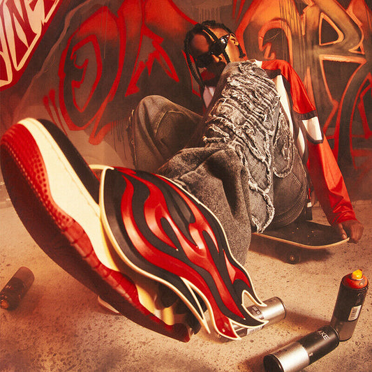 DICETINY × OLD ORDER Flame Patch Skate Shoes/Unisex Retro Thick-Soled Sneaker