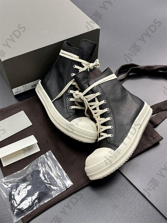 Correct Vers. Rick Owens Wax Surface Satin Sub-line Leather Shoes High/Low Cut