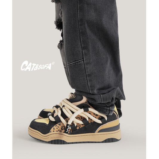 CAT&SOFA: Dirty Braid Original Leopard Print Street Board Shoes Casual Loafers