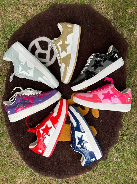BAPESTA G Ver Patent Leather Streetwear Sneakers Low-Top Casual Skateboard Shoes