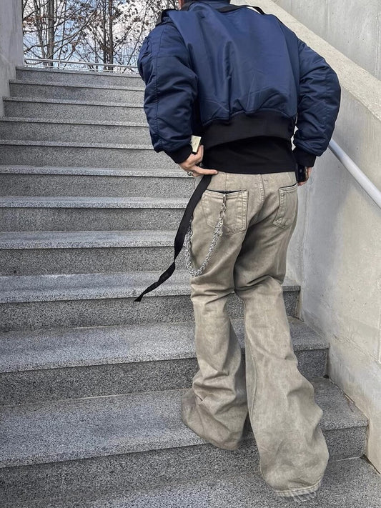 Self-made Rick Owen Earth Tone Flared Stacked Jeans – Slim Washed Wide-Leg Opium