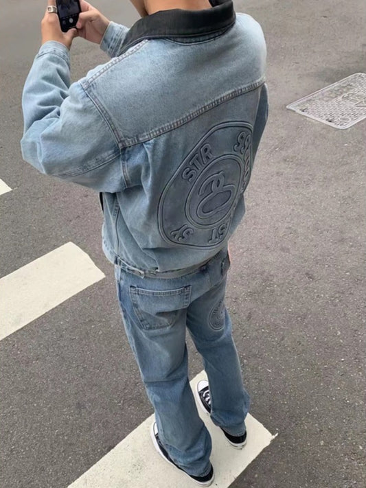Self-made Stussy Embossed 8 ball X Levis Jacket Washed Denim Outerwear