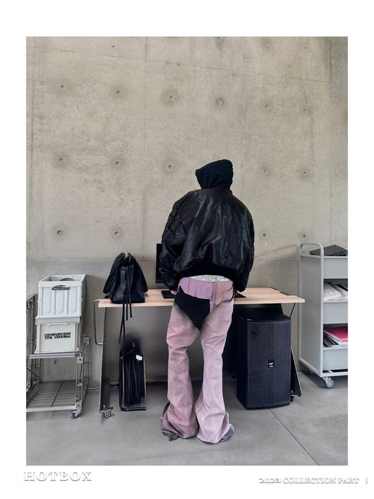 RO Rick Owens Pink Patchwork Coating Slim Flared High Street Distressed Washed Denim Jeans