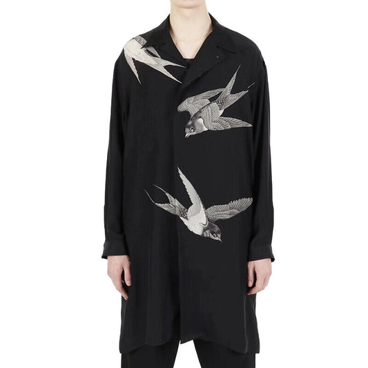 Self-Made Yohji Yamamoto 21AW Dark Silk Swallow Print Back Patch Casual Shirt
