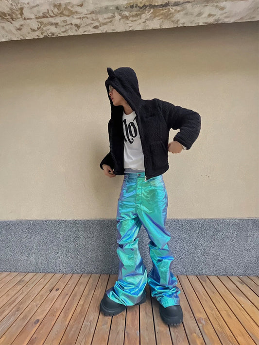 Rickowen Acbt Coated Glossy Black Patent Jeans - Wide-Leg Flared Trousers