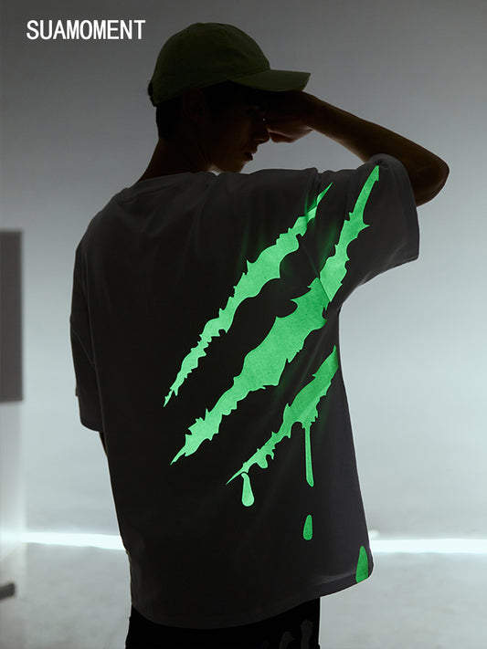 SUAMOMENT BloodClaw Loose Fit Tee Claw Marks Foil Print Couples' Casual