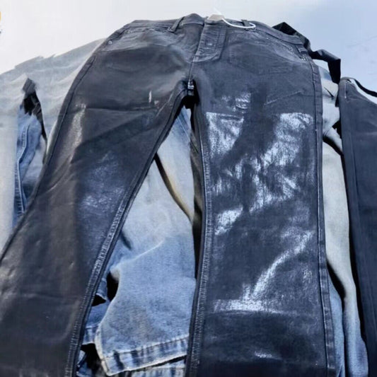 RO Rick Owen Wax-Coated Handcrafted Denim Jeans Slim Flare Stretch, Leanfit, Wokkvibe 91YI