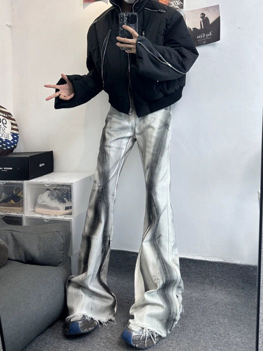 High Street RO Rick Owens Dirty Color Gradient Flare Jeans Distressed Retro Trousers