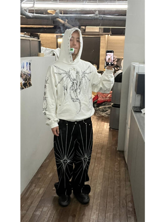 THUG CLUB Street Spider Web Embroidered Straight-Leg Jeans Loose Fit Jay Park