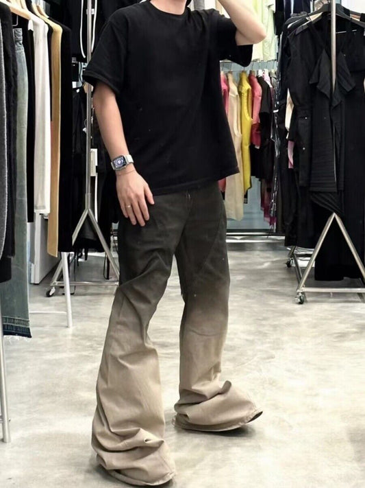 Self made Rick Owen black yellow gradient mid-rise washed floor-length bell-bottom jeans