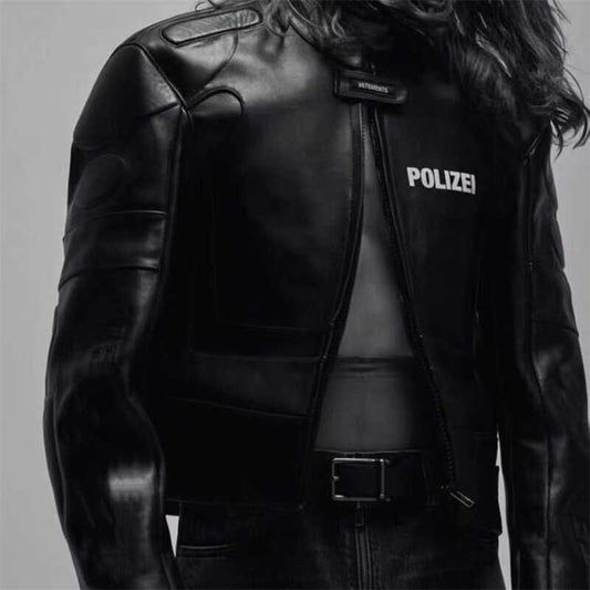 Self-made Vetements Motorcycle Leather Jacket Polizei Wild Man Biker Letter Print