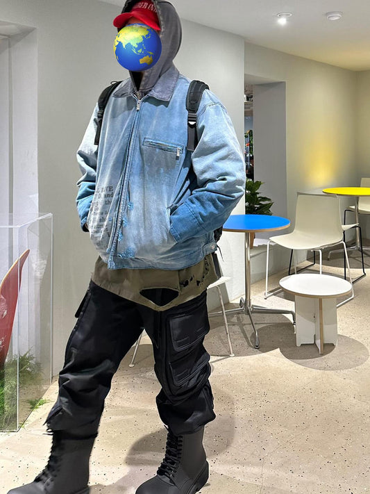 ERD Melancholic Rich Kid Distressed Washed Workwear Denim Jacket Outerwear