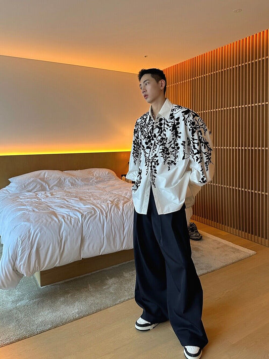 23FW【J Ver】Cold Branches Floral Plush Fine Spun Washed Cotton Loose Sleeve Shirt