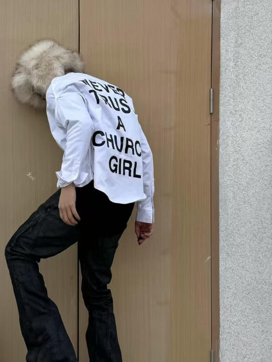 Self-made Hood By Air Religious Girl Print Shirt – White Oversized Casual Fit