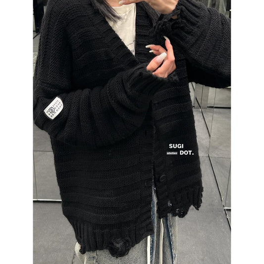 24FW Maison MM6 Destroyed Knit Wool Margiela Cardigan Jackets - Slouchy Style