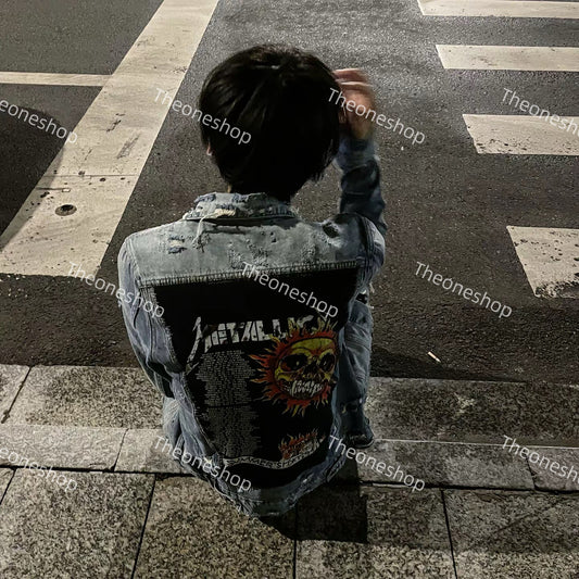 Self-made AMIRI 16OG Patchwork Back Kill Denim Jacket Metallica High-Street