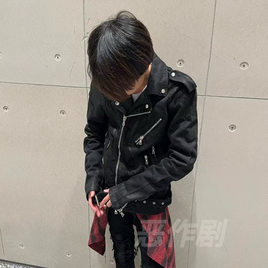 Self-made AMIRI 16SS Heavyweight Waxed Biker Jacket - Slim Waist Zip Fit High-Street