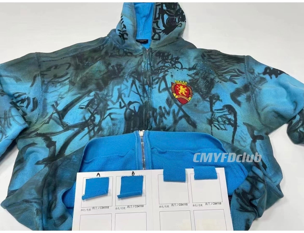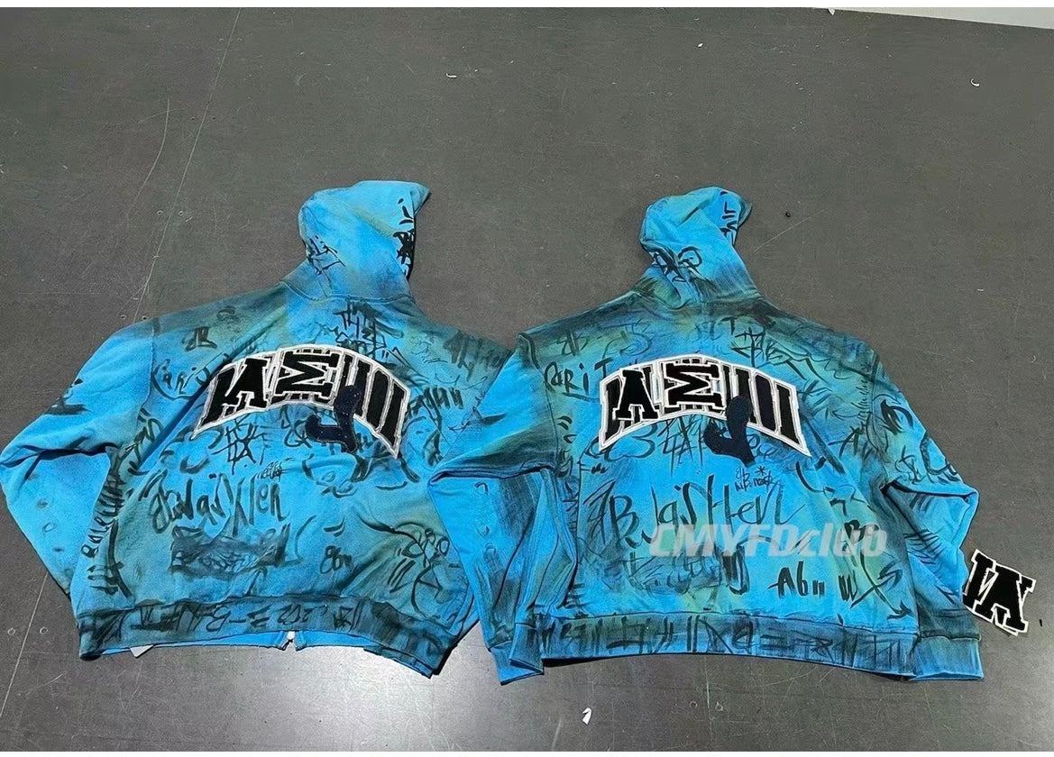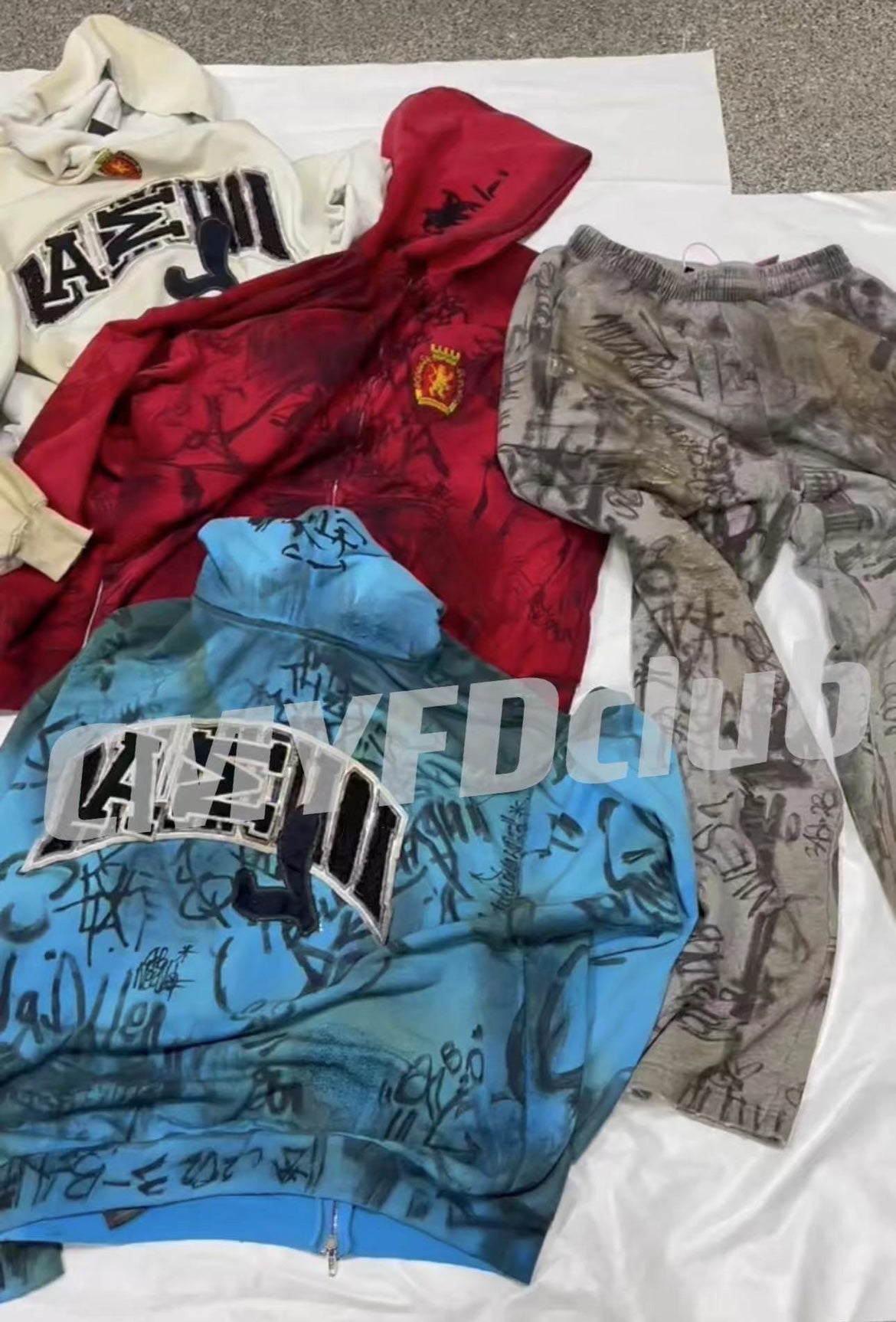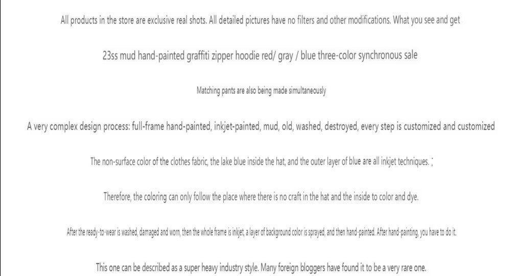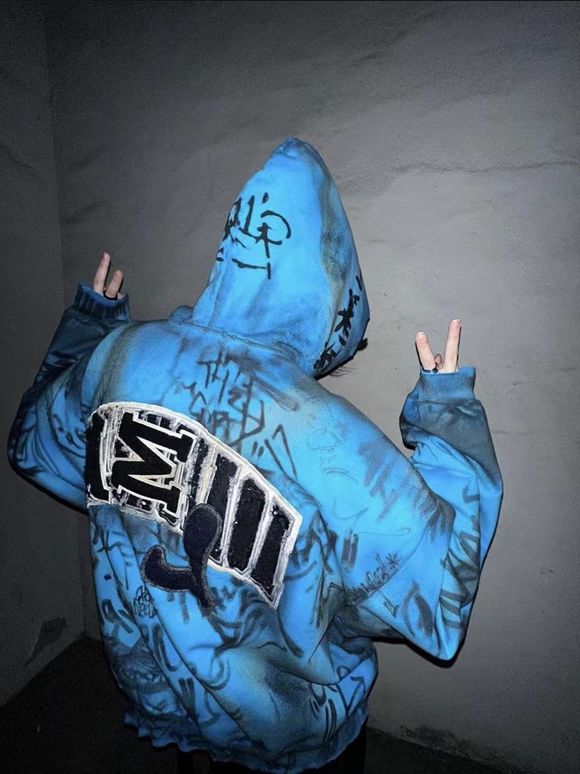 This 23SS Runway Manchester United hoodie stands out with its hand-painted graffiti design and distressed, muddy finish. The zip-up style adds convenience while showcasing team pride. Stay stylish and comfortable while supporting your favorite team.
