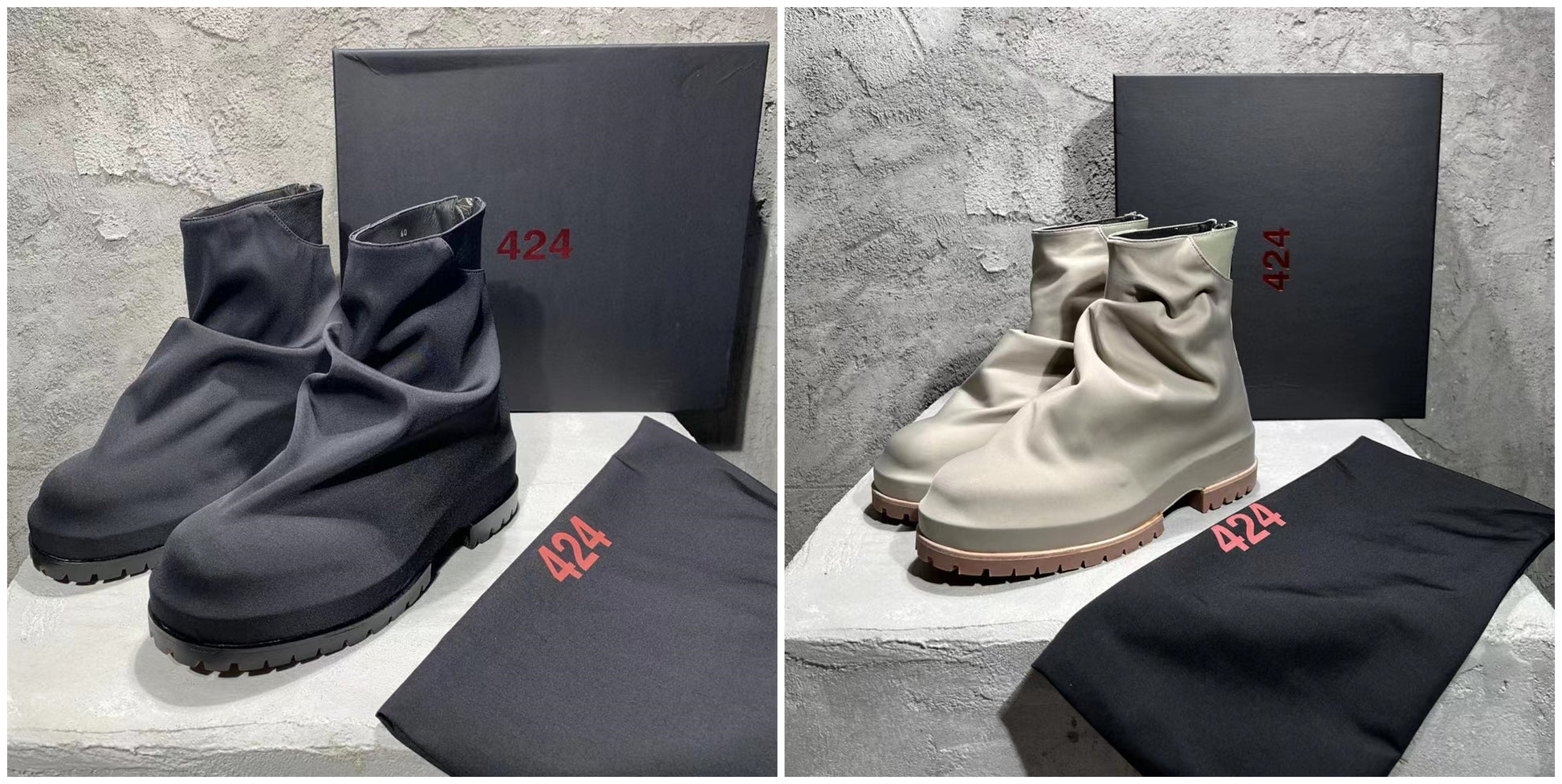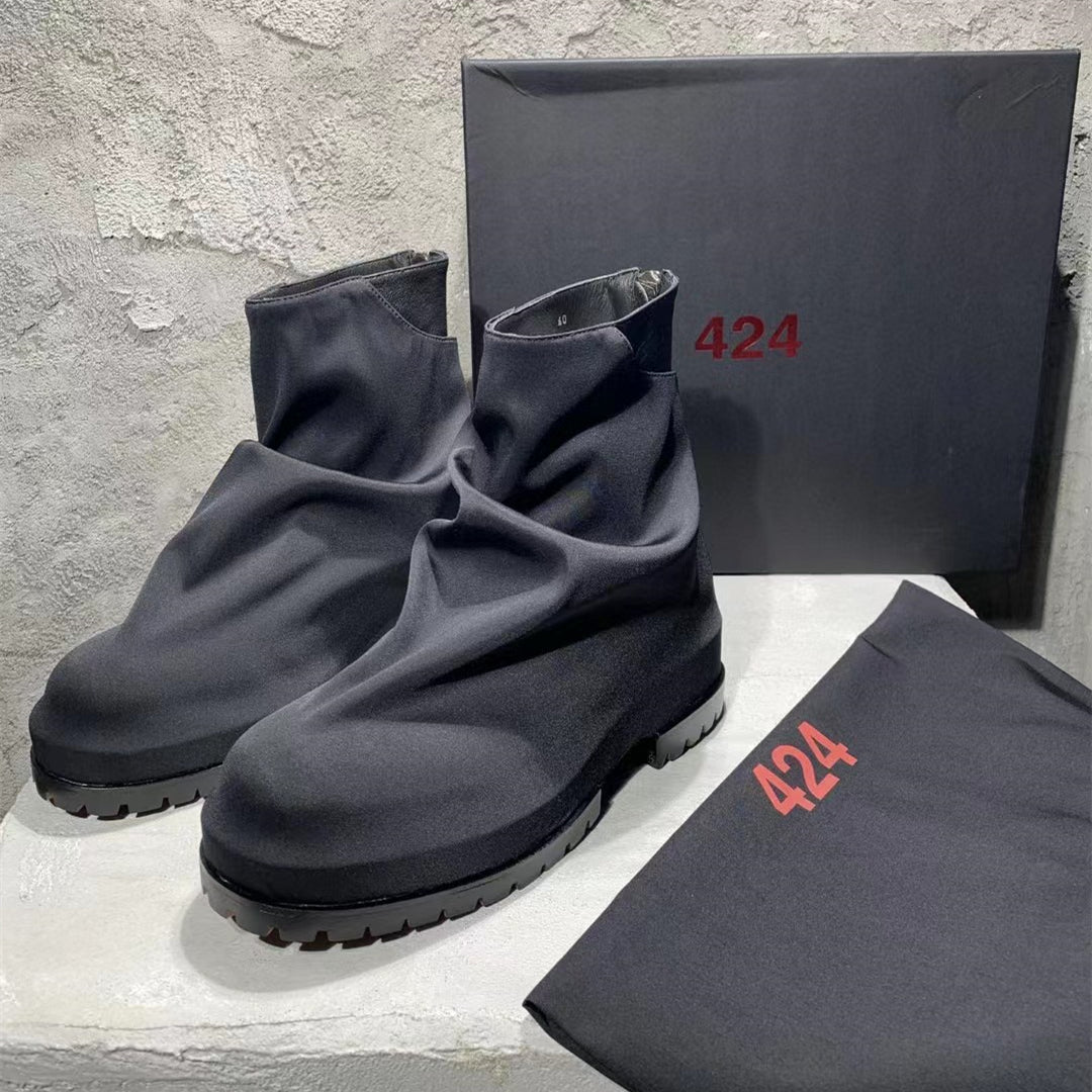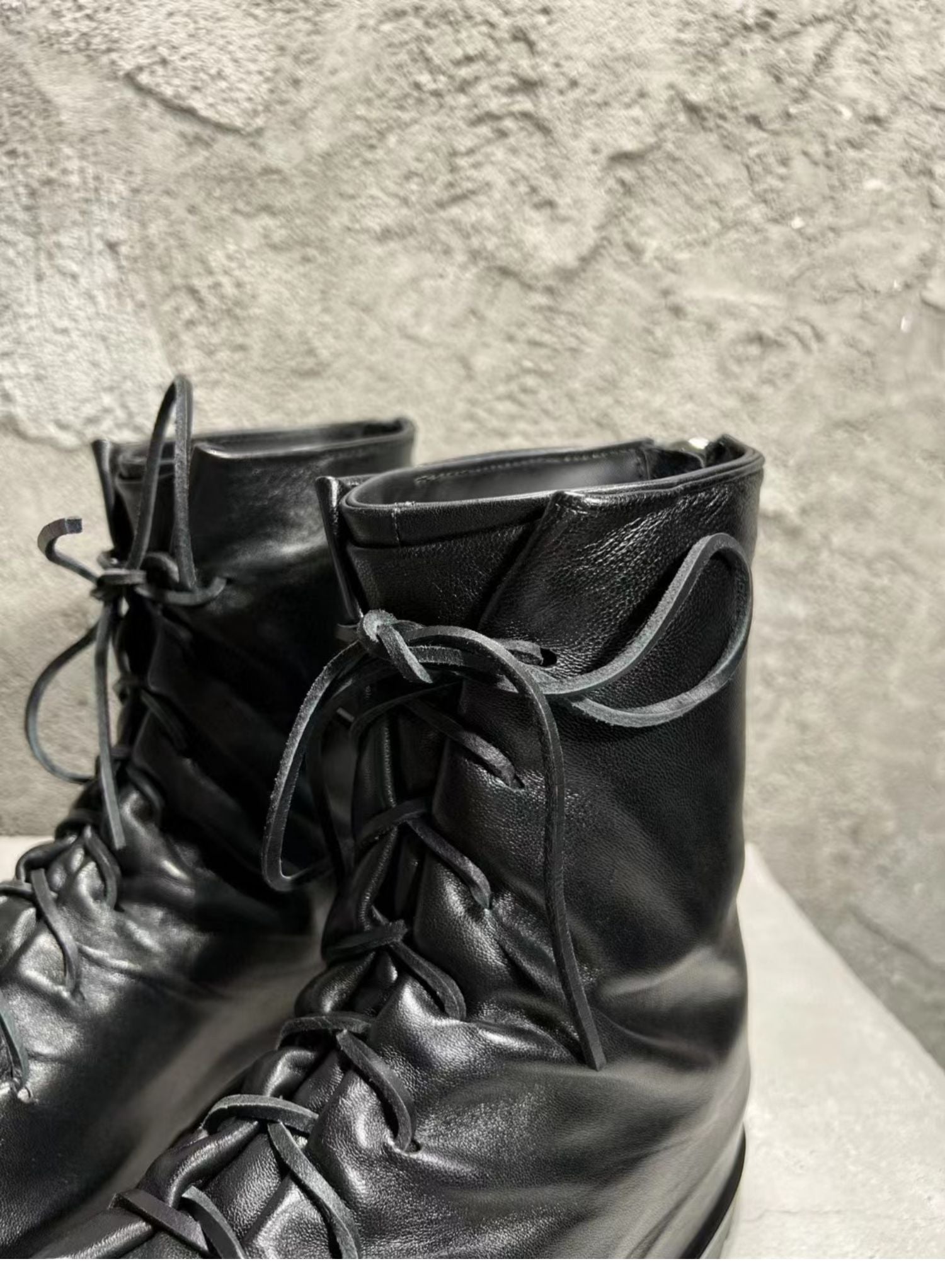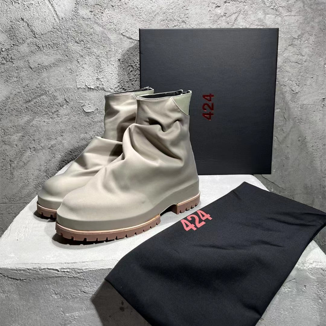 424 on Fairfax SS22 Crinkled Zip High-Top Retro Thick-Soled Lambskin Ankle Boots