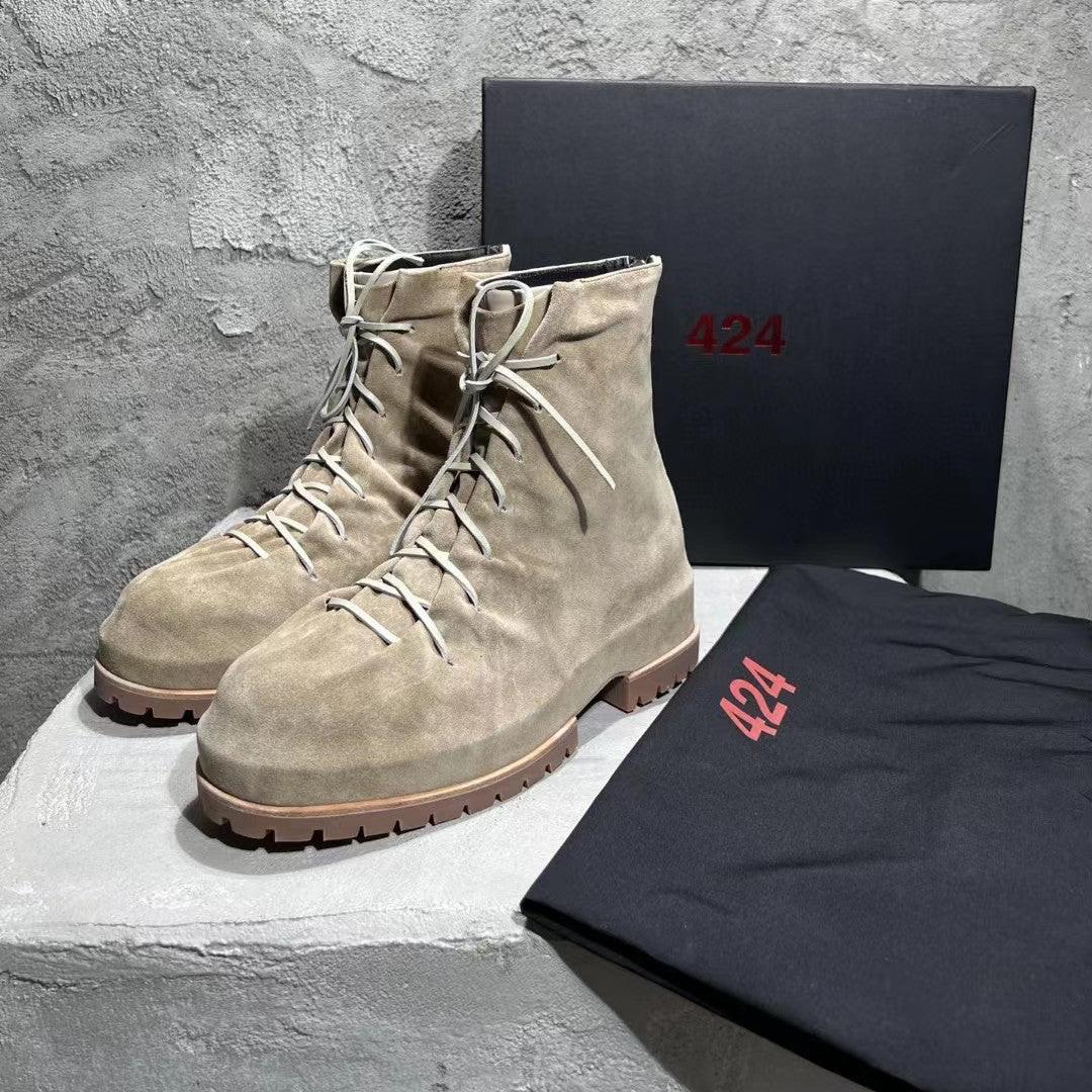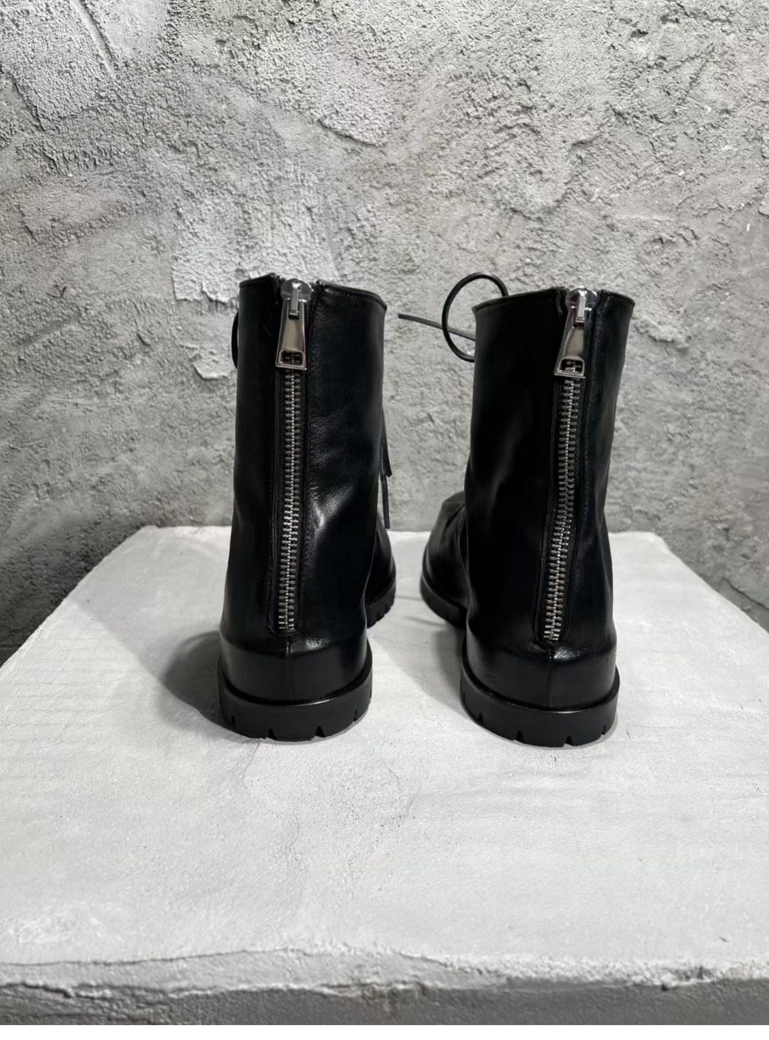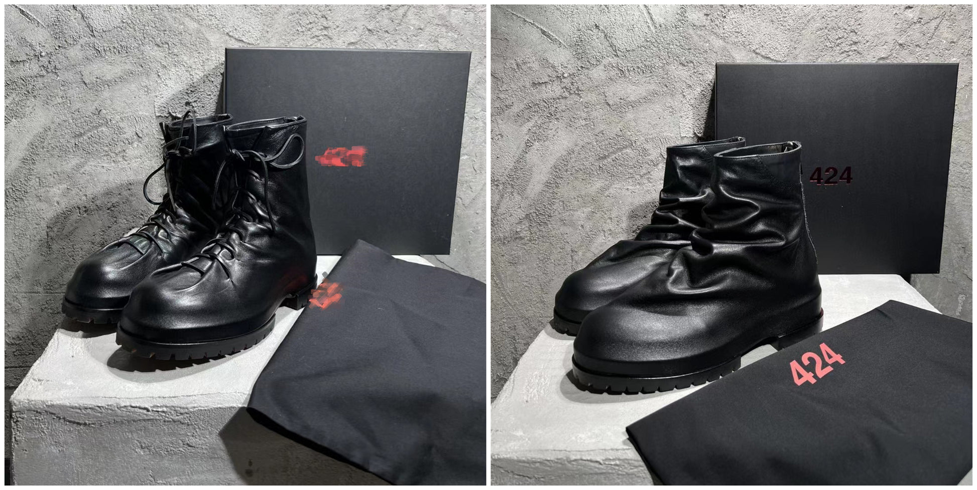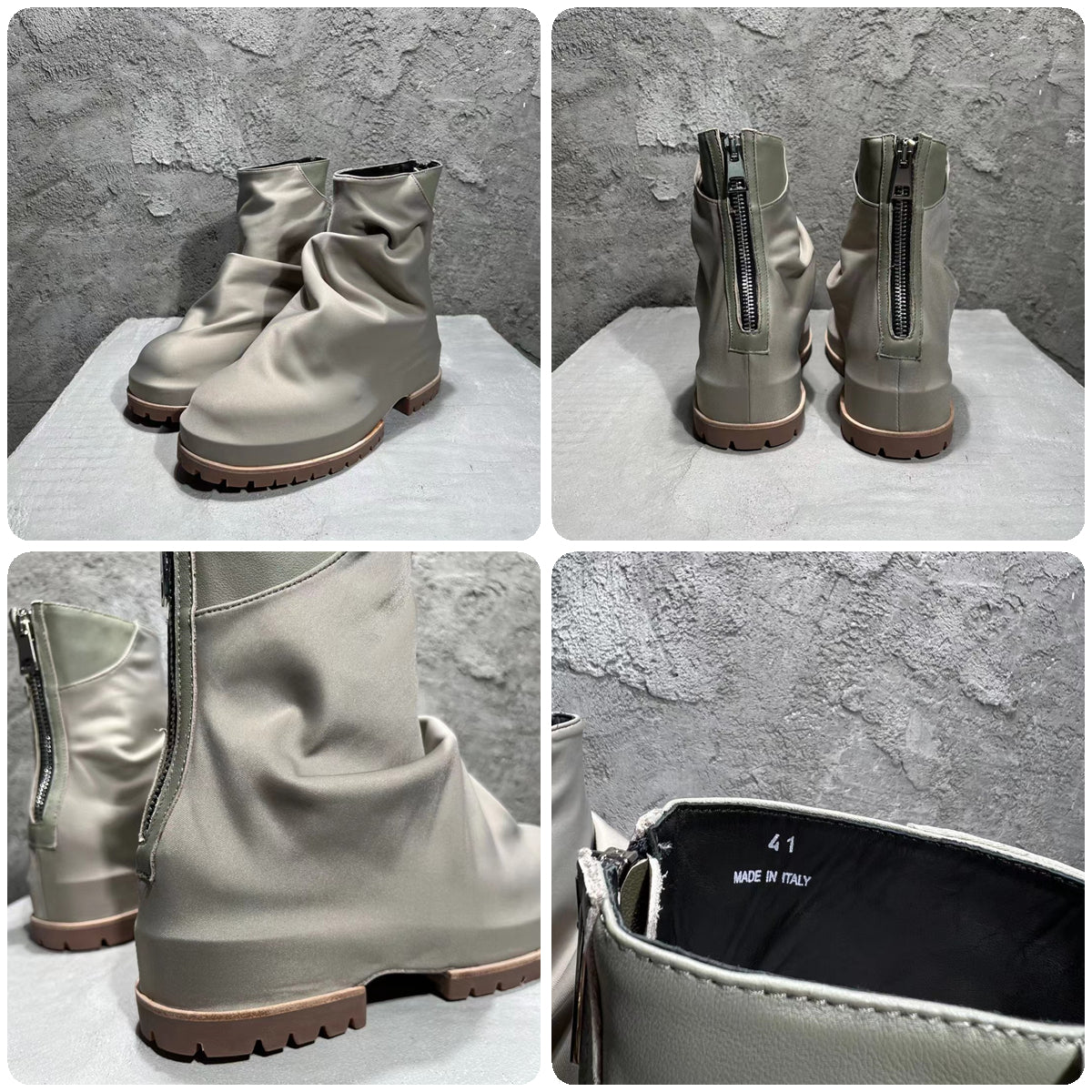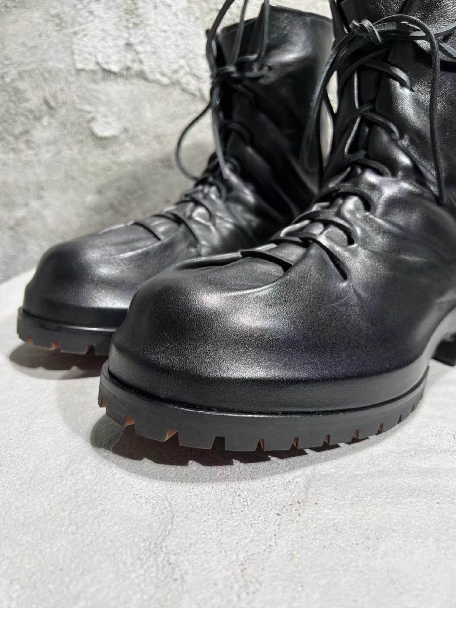424 on Fairfax SS22 Crinkled Zip High-Top Retro Thick-Soled Lambskin Ankle Boots