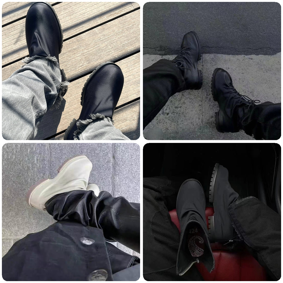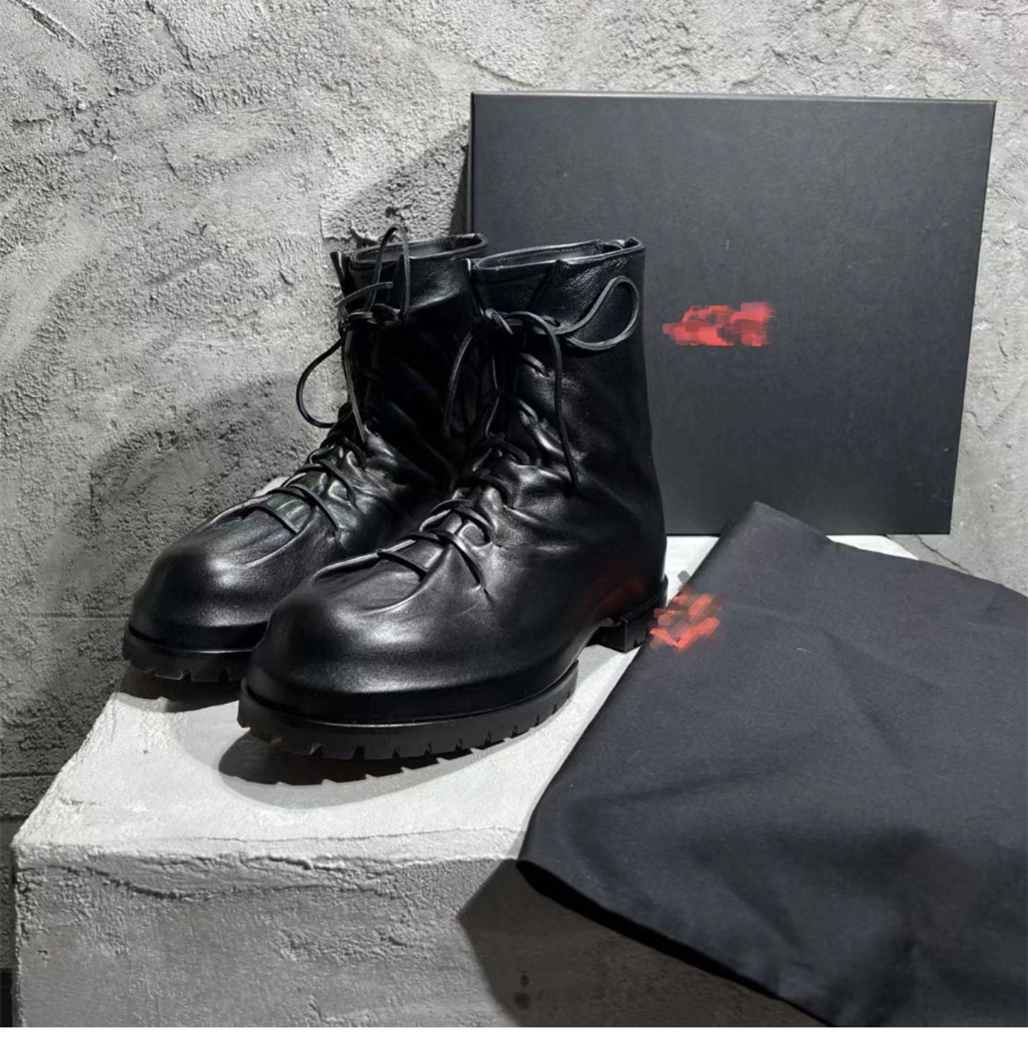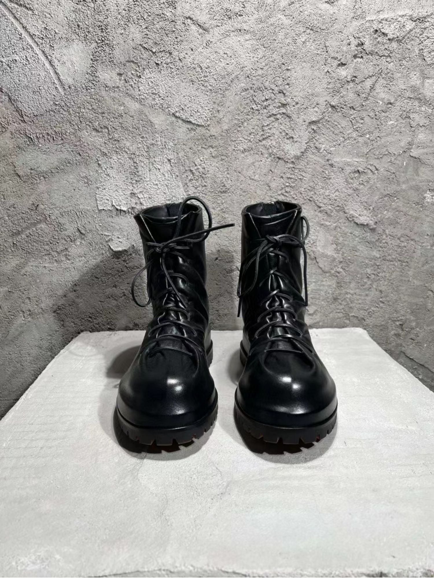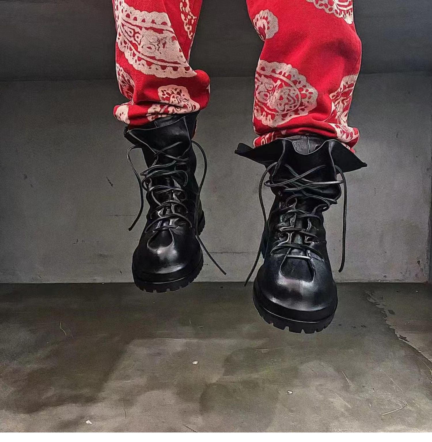 424 on Fairfax SS22 Crinkled Zip High-Top Retro Thick-Soled Lambskin Ankle Boots