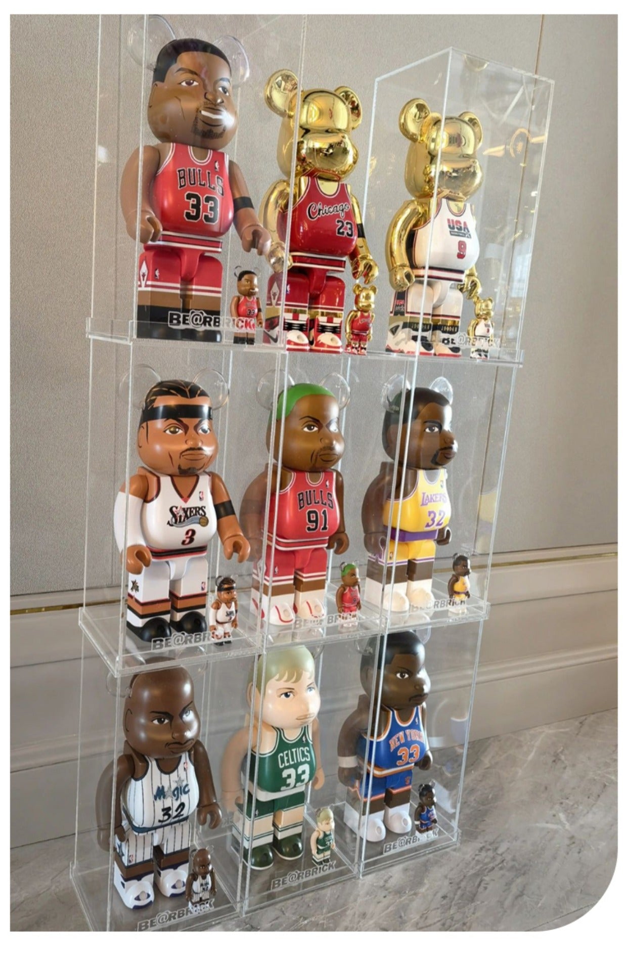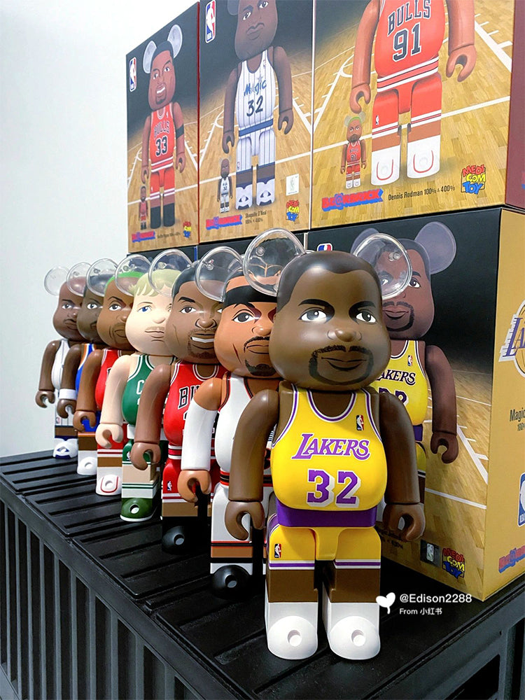 This BE@RBRICK 400% figure is a must-have for NBA fans and collectors alike. Made from durable ABS material, this original and licensed reproduction features iconic NBA players such as Kobe Bryant, Michael Jordan, and LeBron James. With intricate details and a sporty theme, this figure is perfect for any basketball enthusiast.