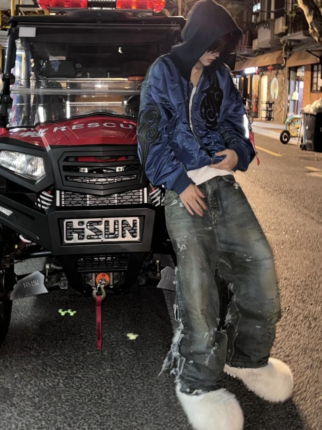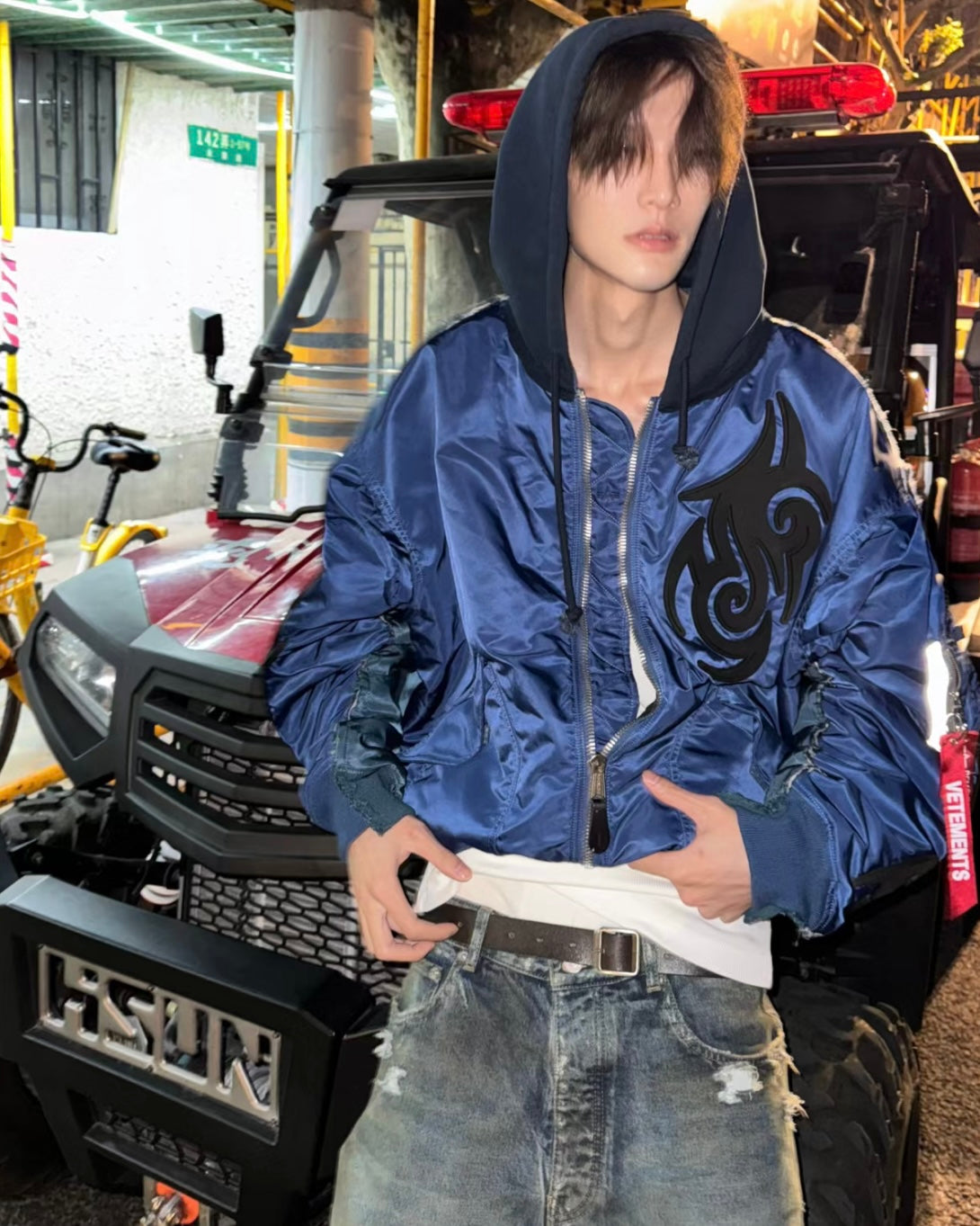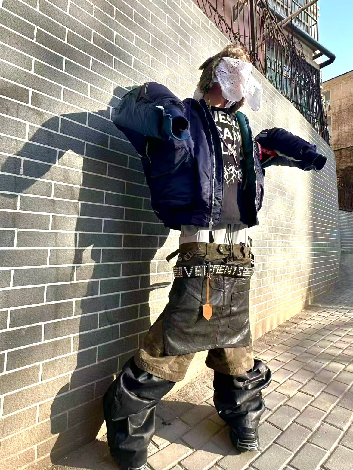 Custom-made 19AW Alpha Industries Vetements Tribal Bomber Blue Padded Jacket