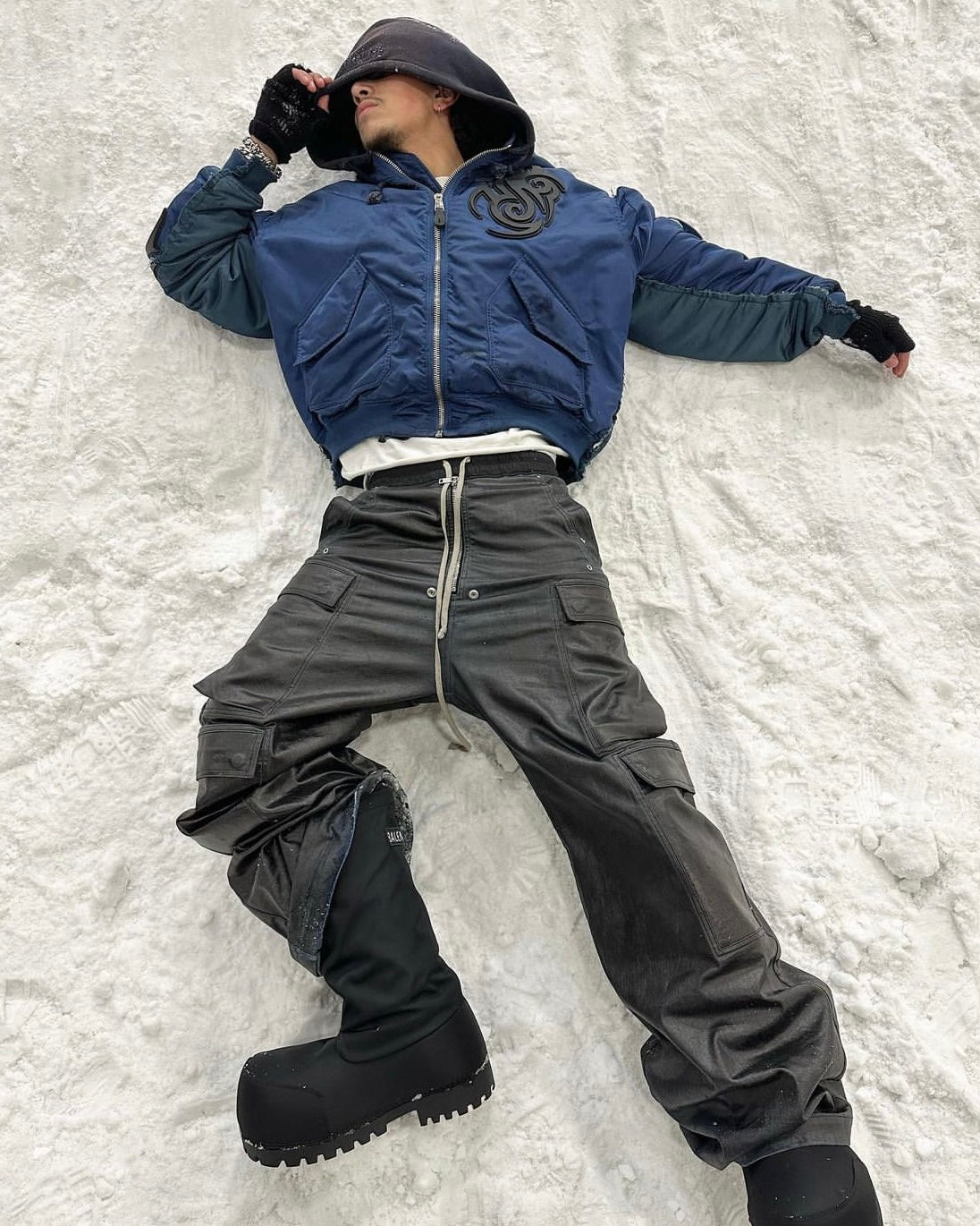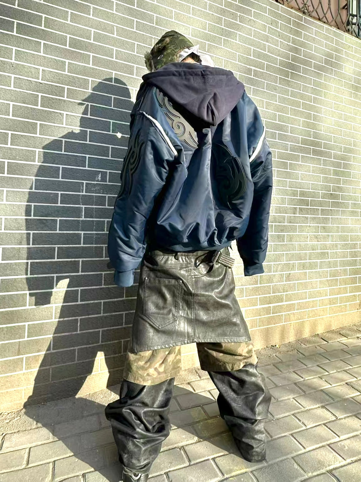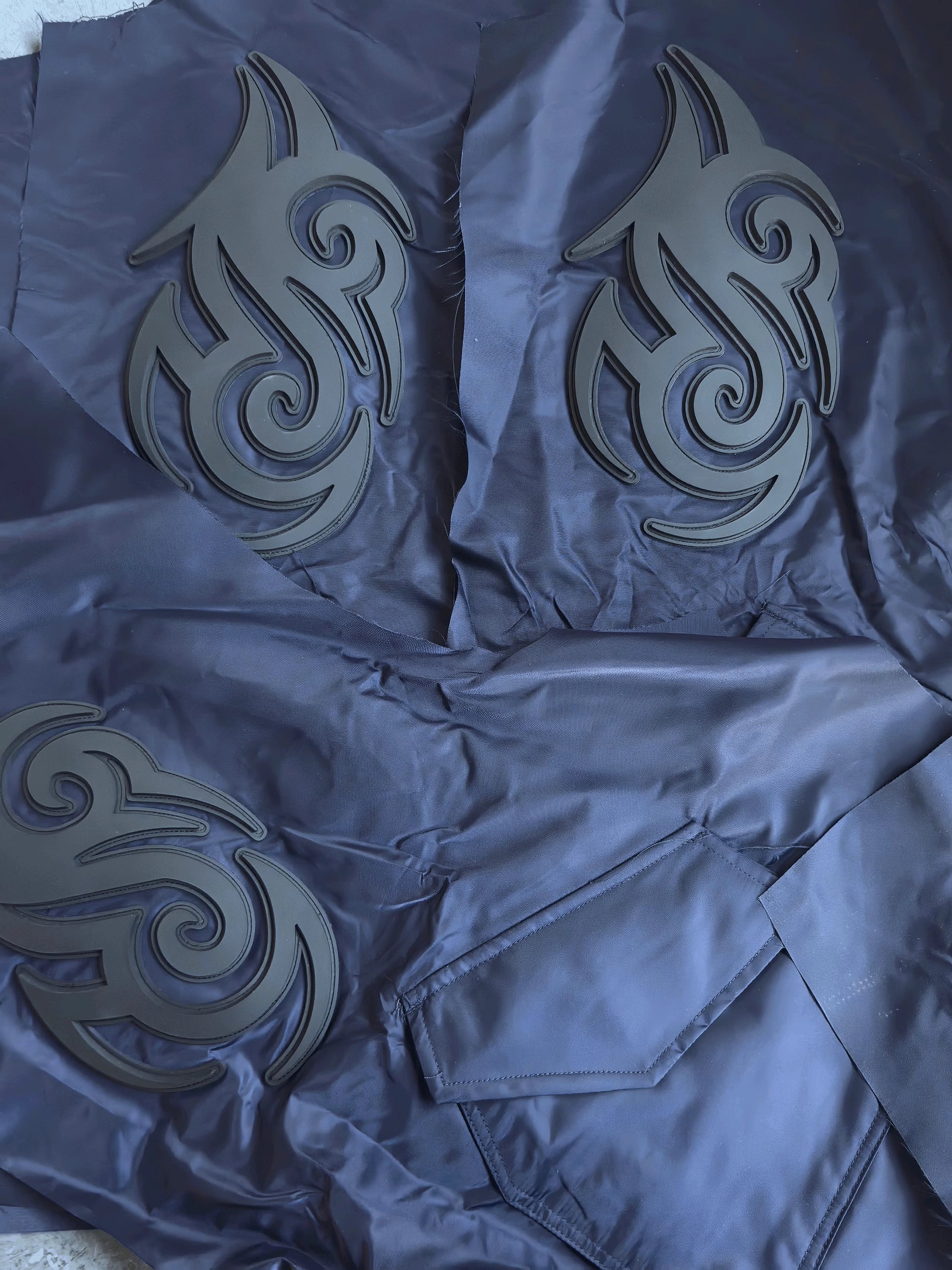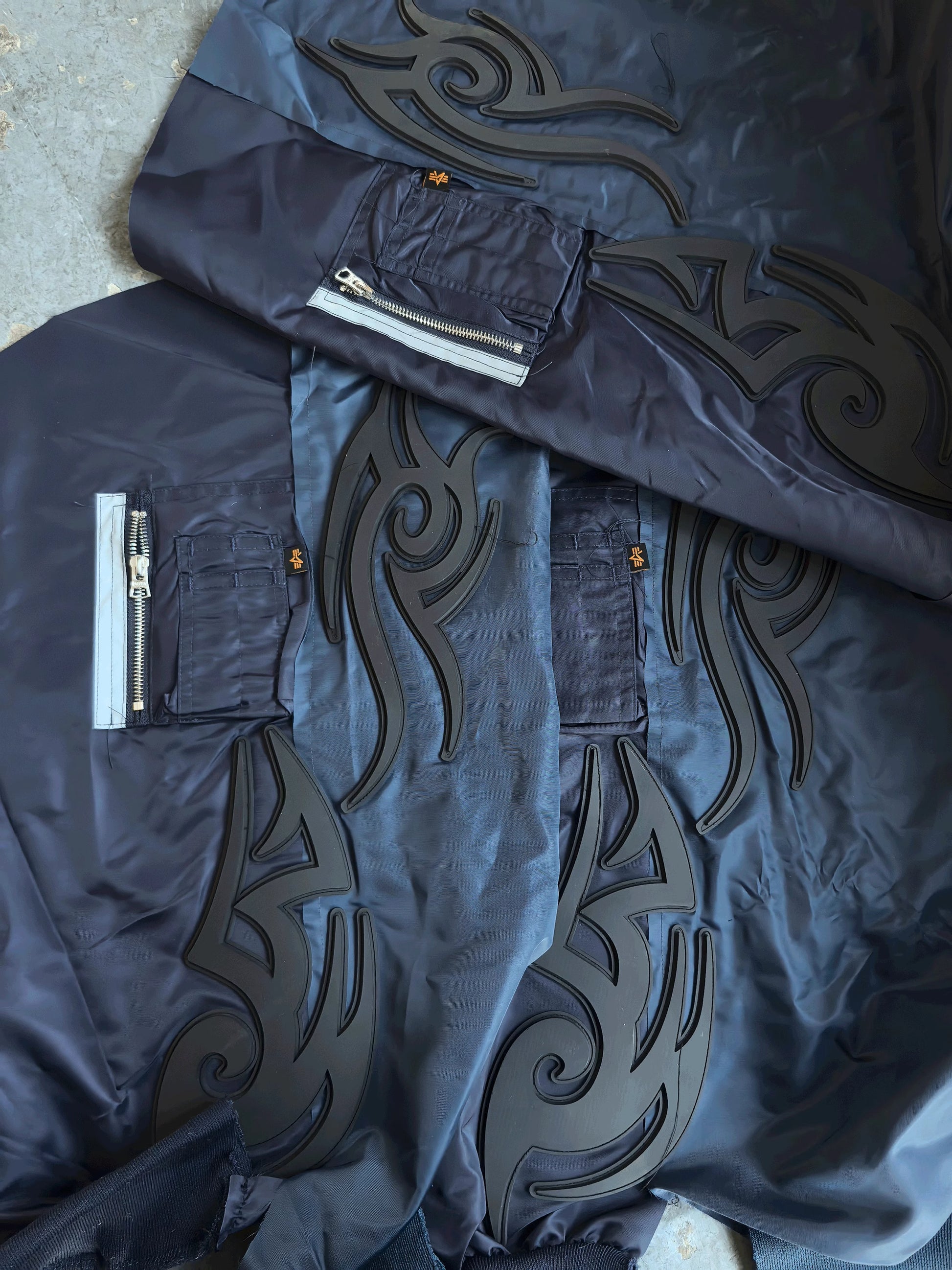This custom-made 19AW Alpha Industries Vetements Tribal Bomber Blue Padded Jacket is crafted with precision and style, featuring a unique tribal pattern and padded material for ultimate comfort and warmth. Perfect for any fashion-forward individual looking to make a statement and stay cozy in colder weather.