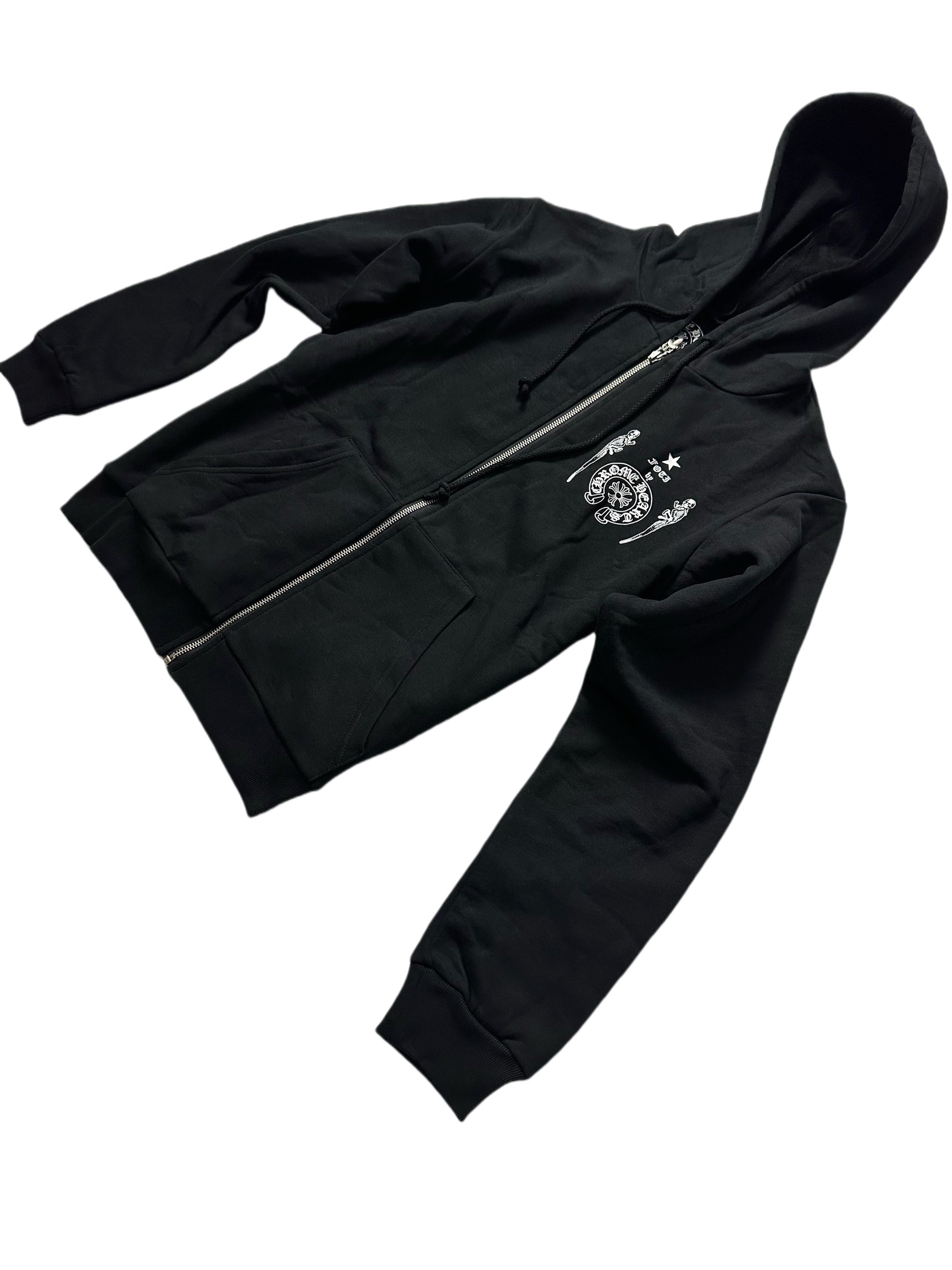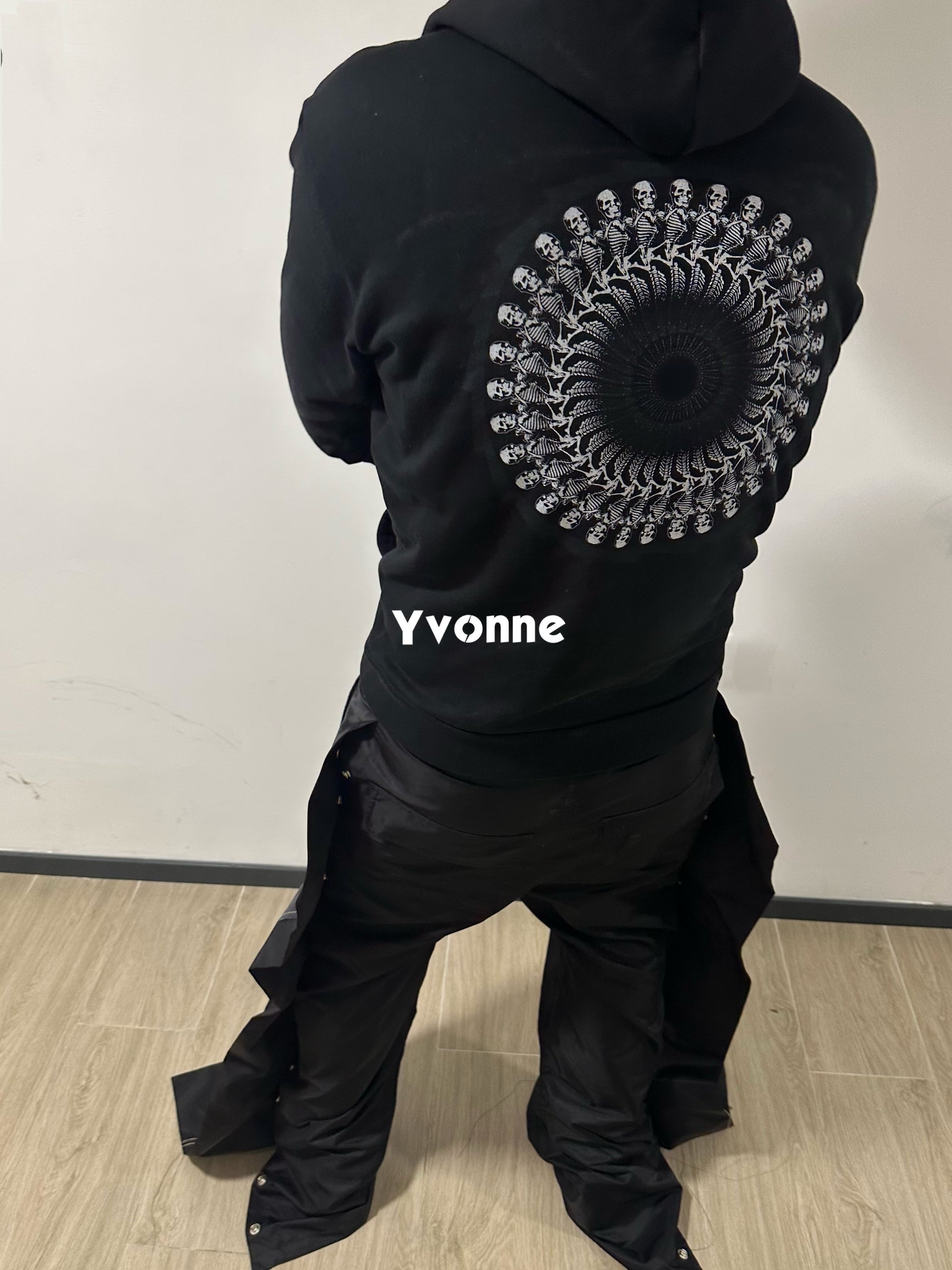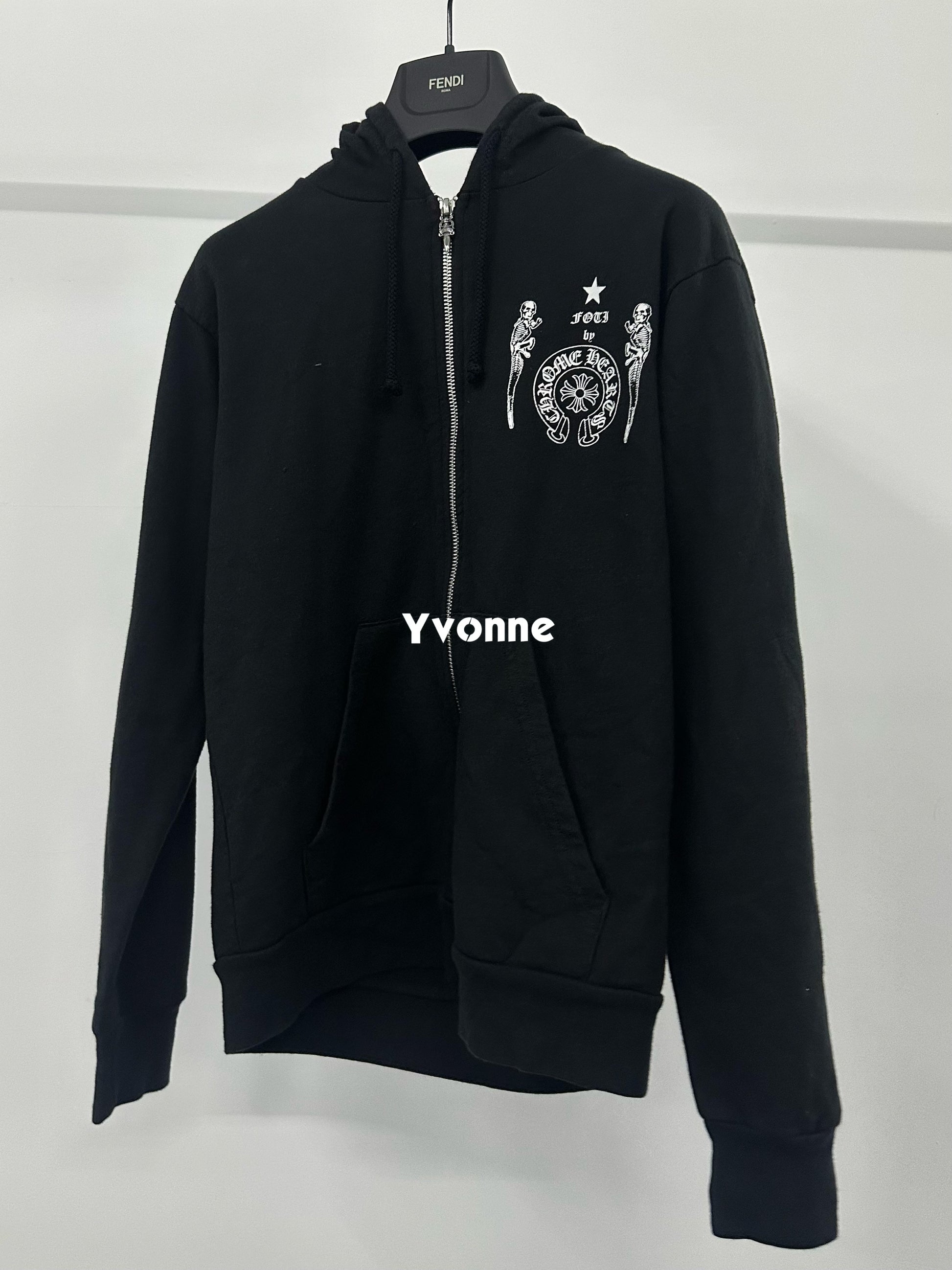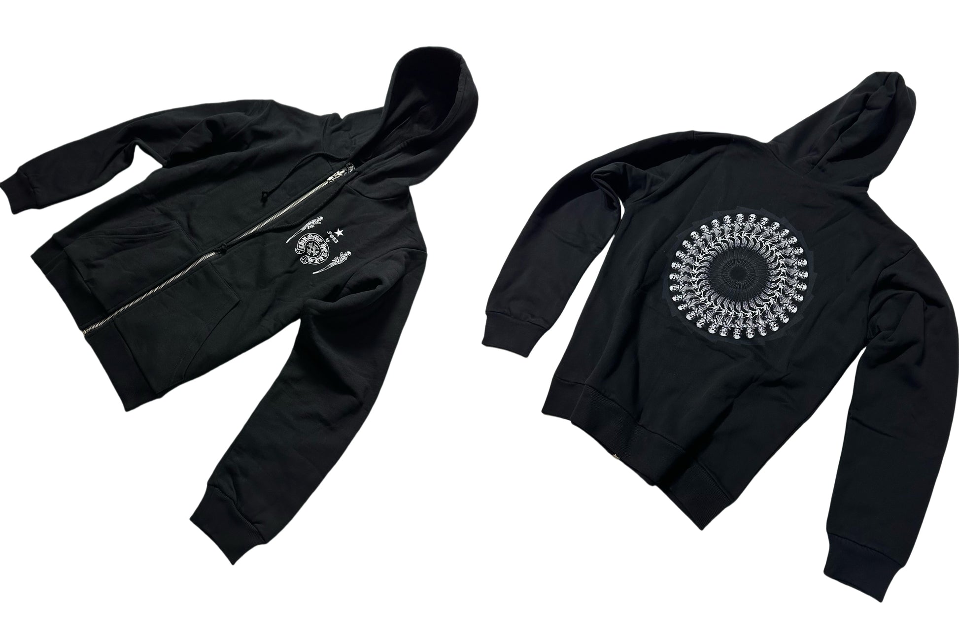 Expertly crafted with a custom Foti Skeleton Chrome Hearts print, this boxy fit hoodie offers both style and functionality. The short plush fabric provides comfortable warmth, while the zip-up design adds convenience. Perfect for chilly days, this jacket is an essential addition to any wardrobe.