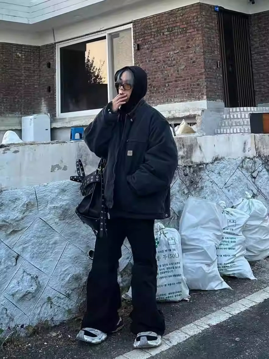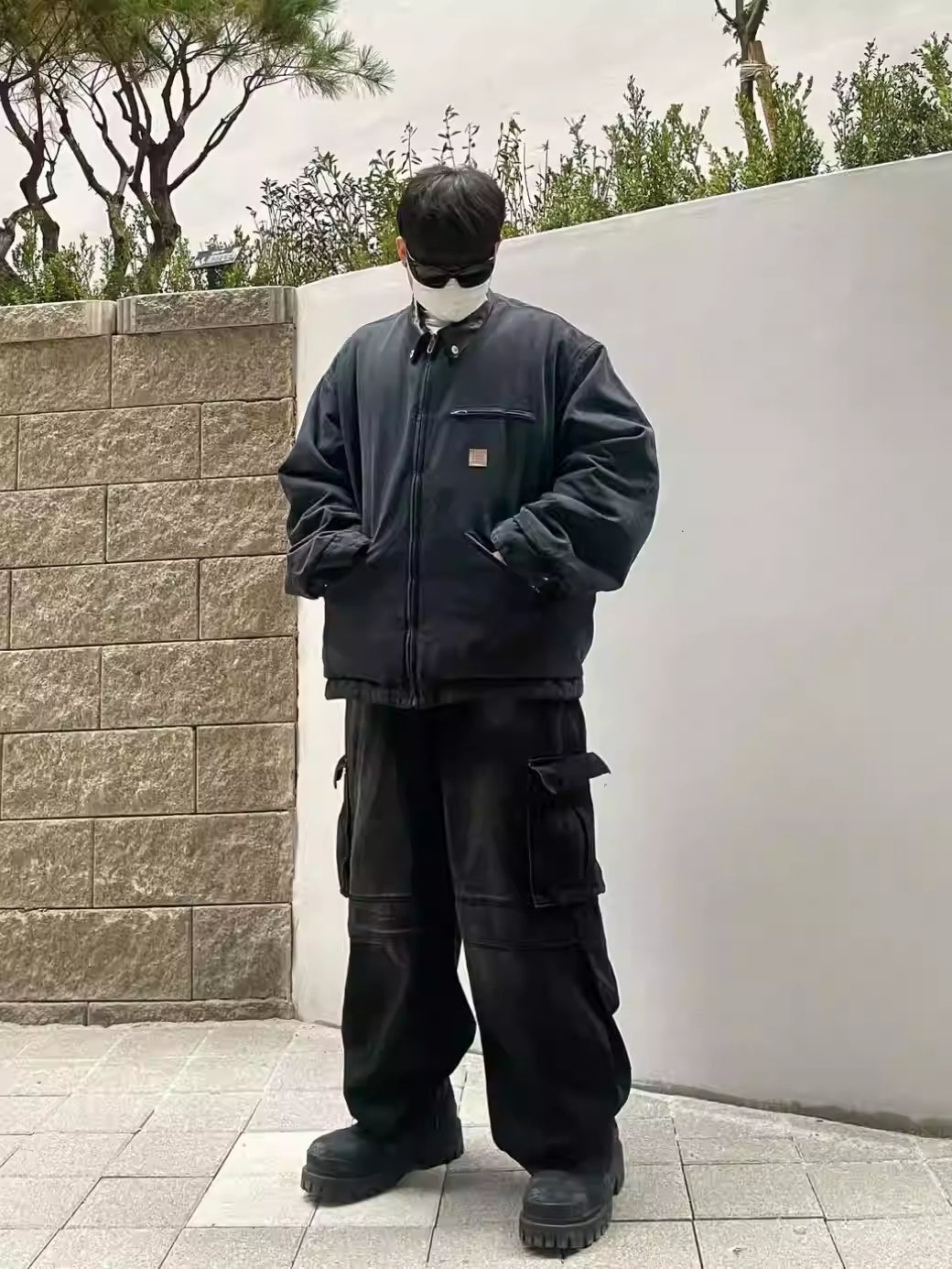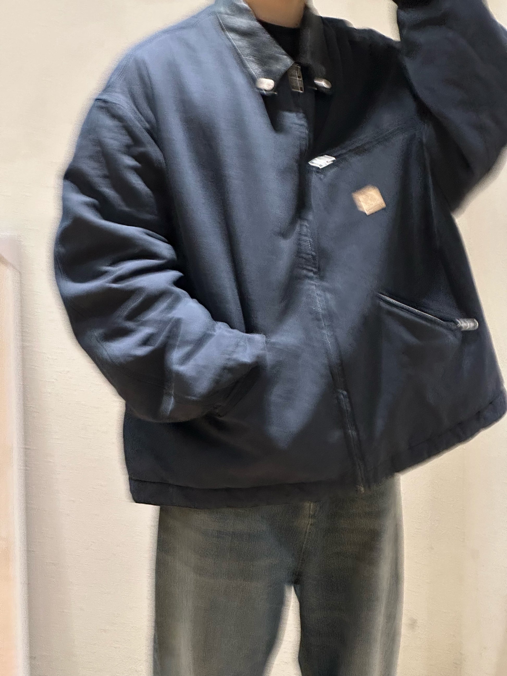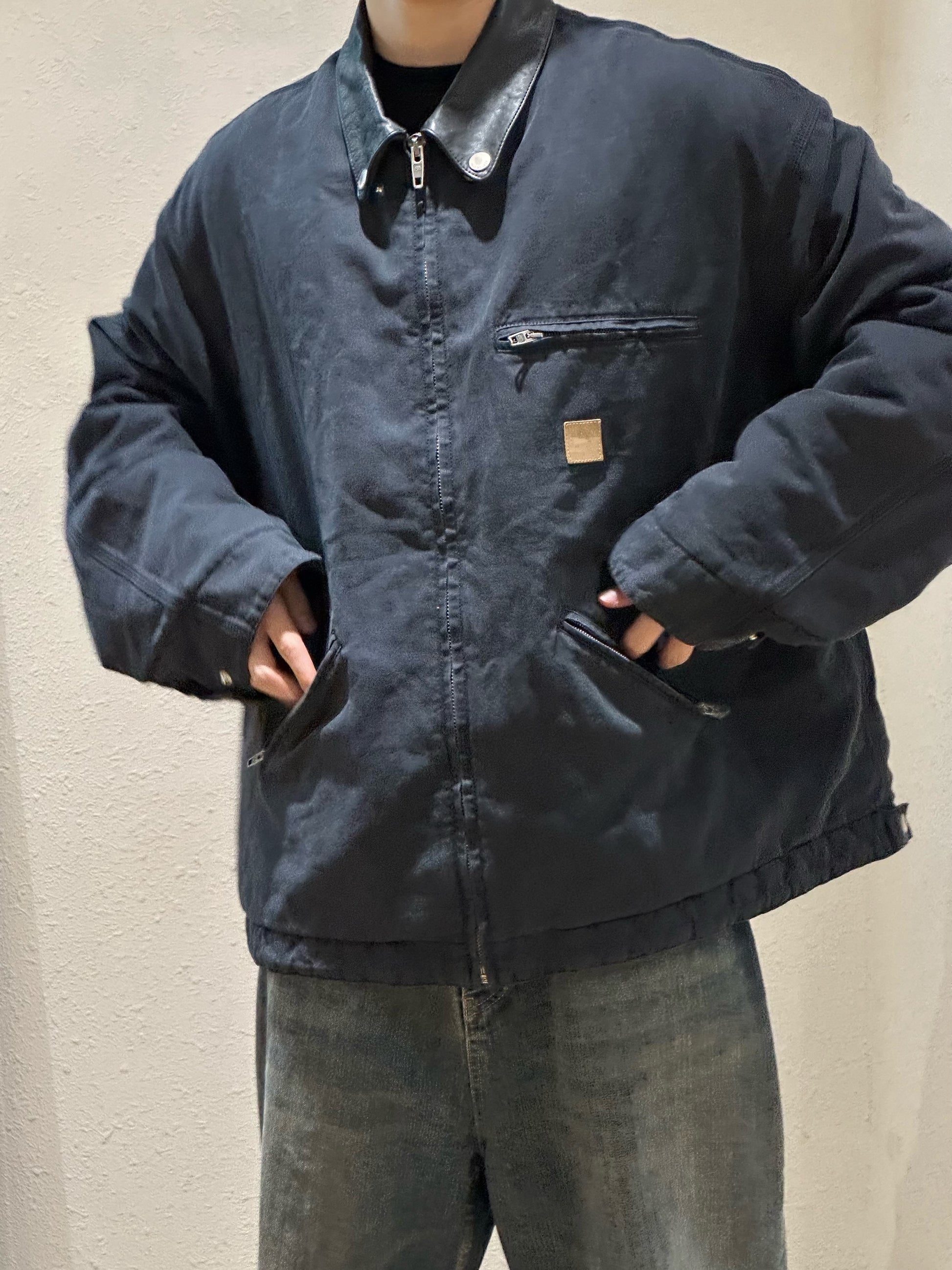 Detroit Retro Washed Leather Collar Jacket - J97 Rework Workwear Cotton Outerwear