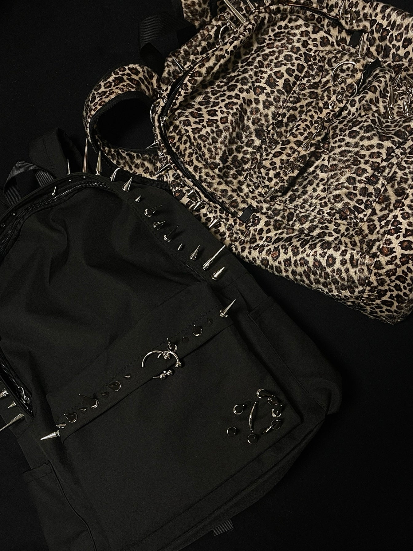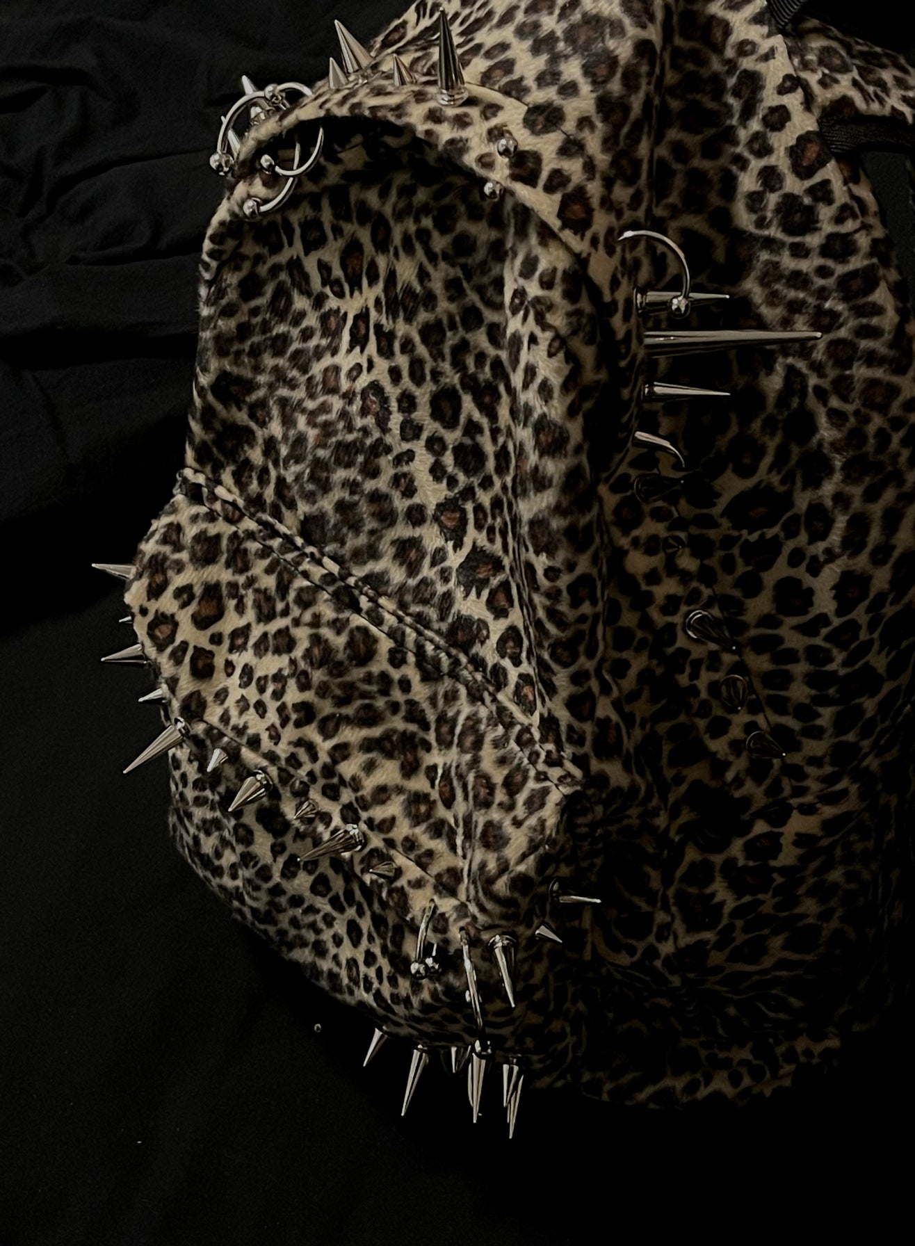 Donclick Playboi Carti Opium Punk Studded Leopard Print Backpack /Black Edition