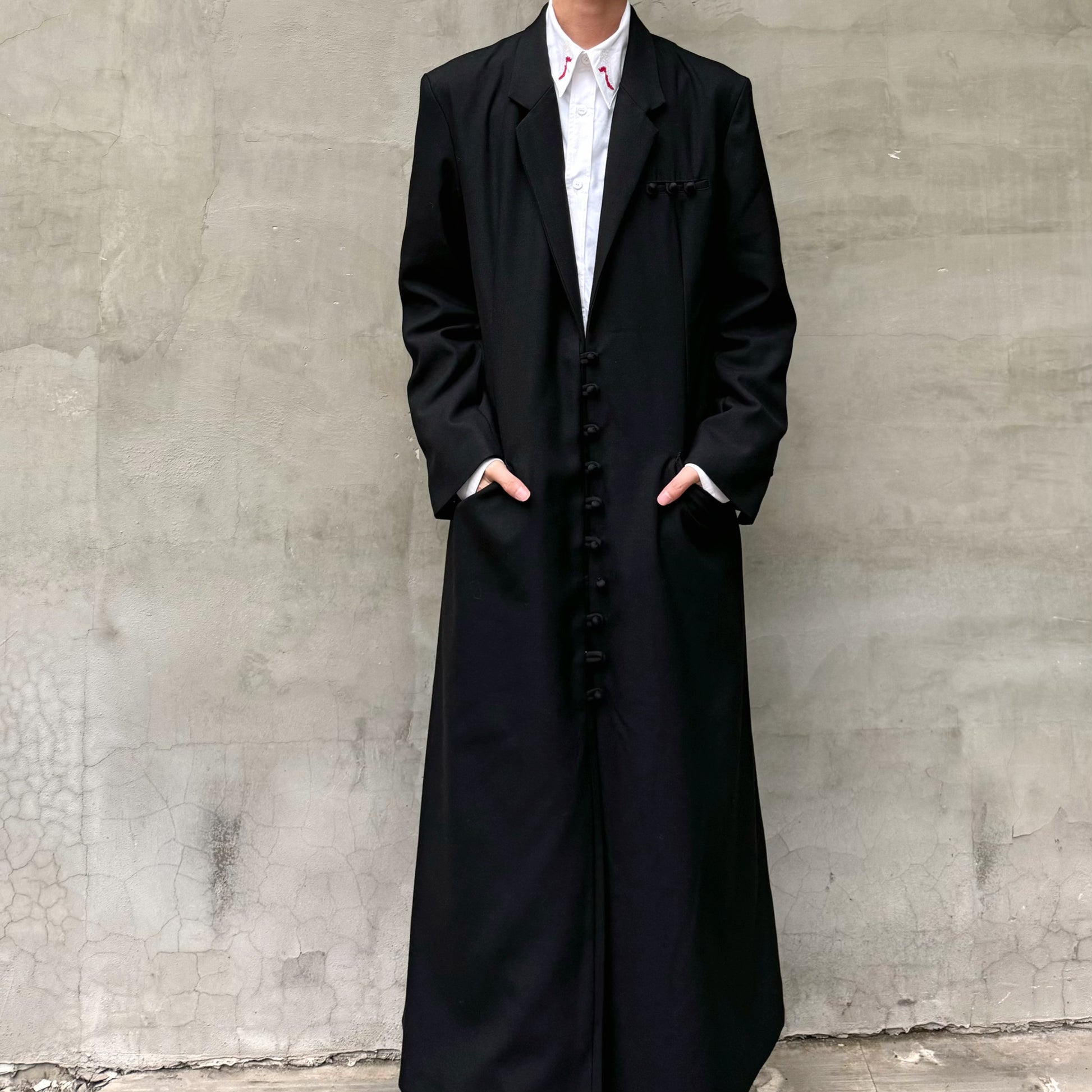 Donclick Yohji AW18 Monastic Collection Tuxedo-Wrap Fabric Buttons Wool Overcoat