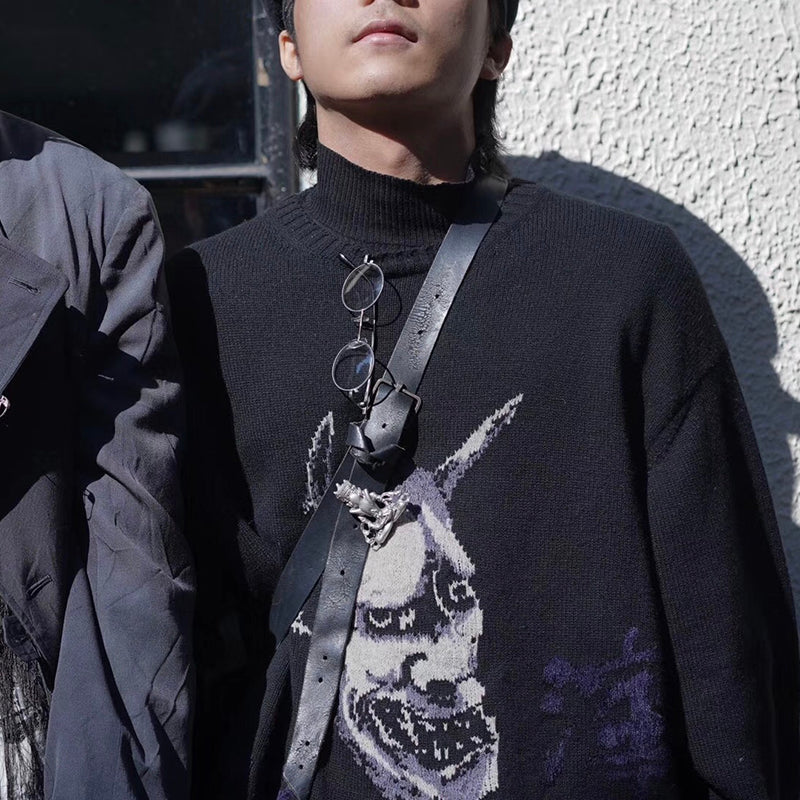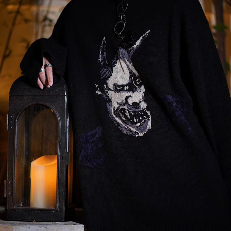 Donclickin -Dark Hannya Mask Muddy Yohji Yamamoto Wool Sweater Knitwear Pullover
