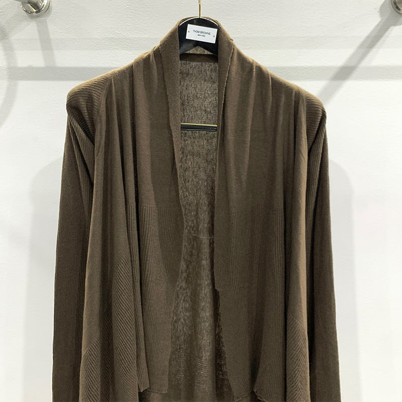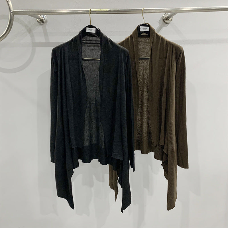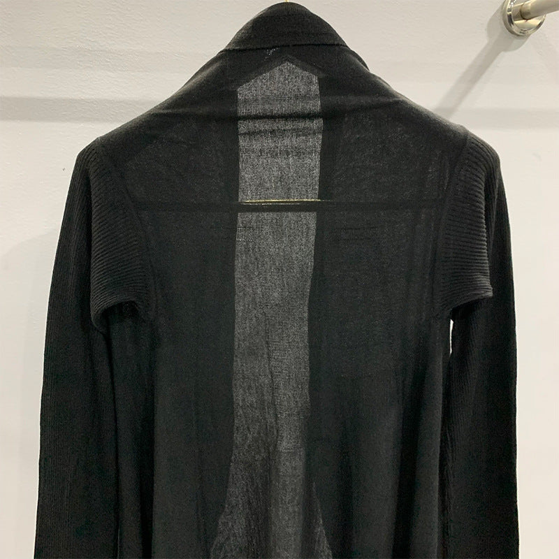 Donclickin 23FW Gothic Rick Owen Patchwork Drape Knit Open-Front Cardigan Jacket