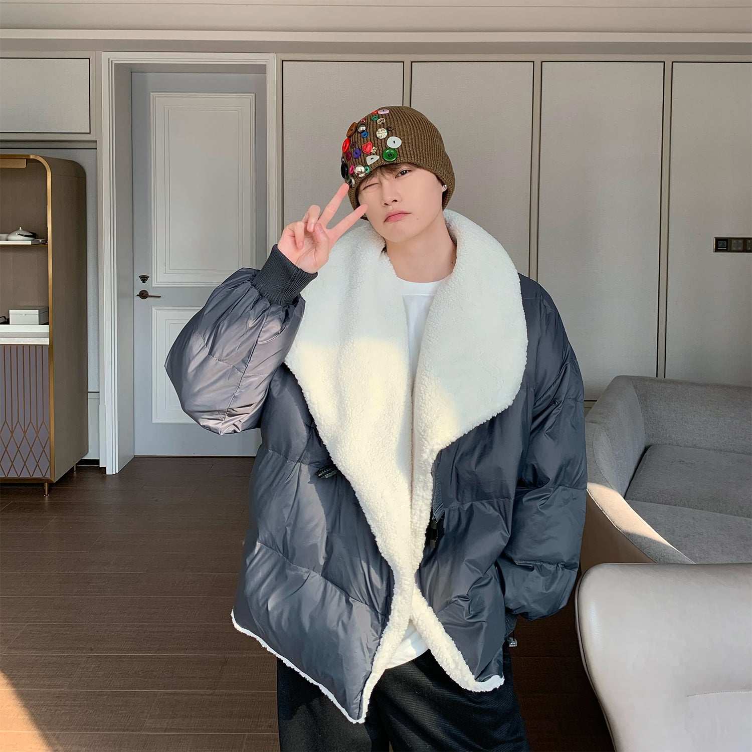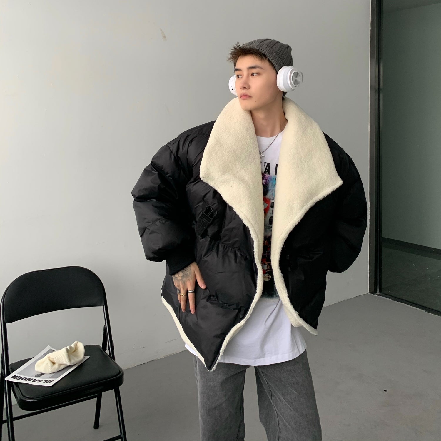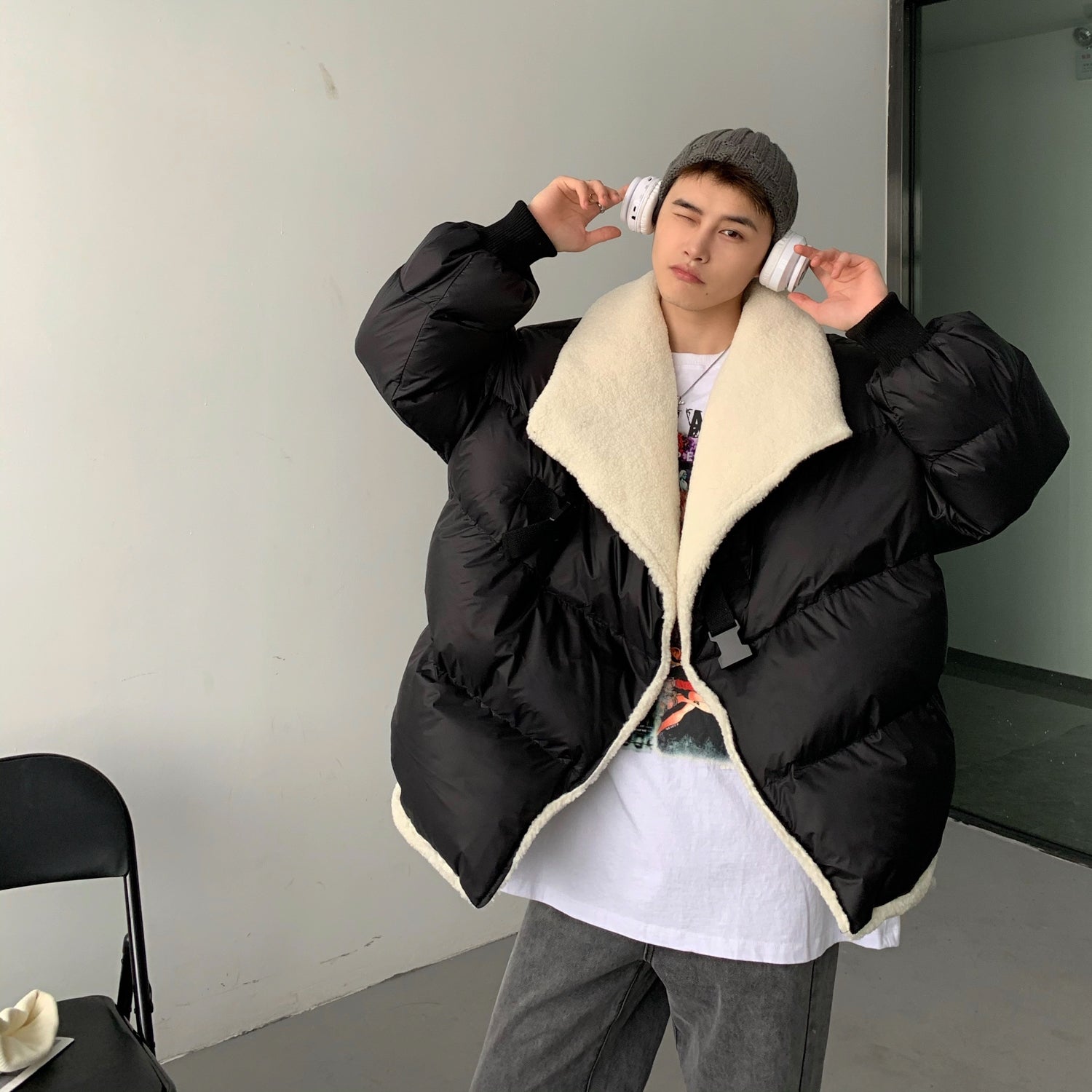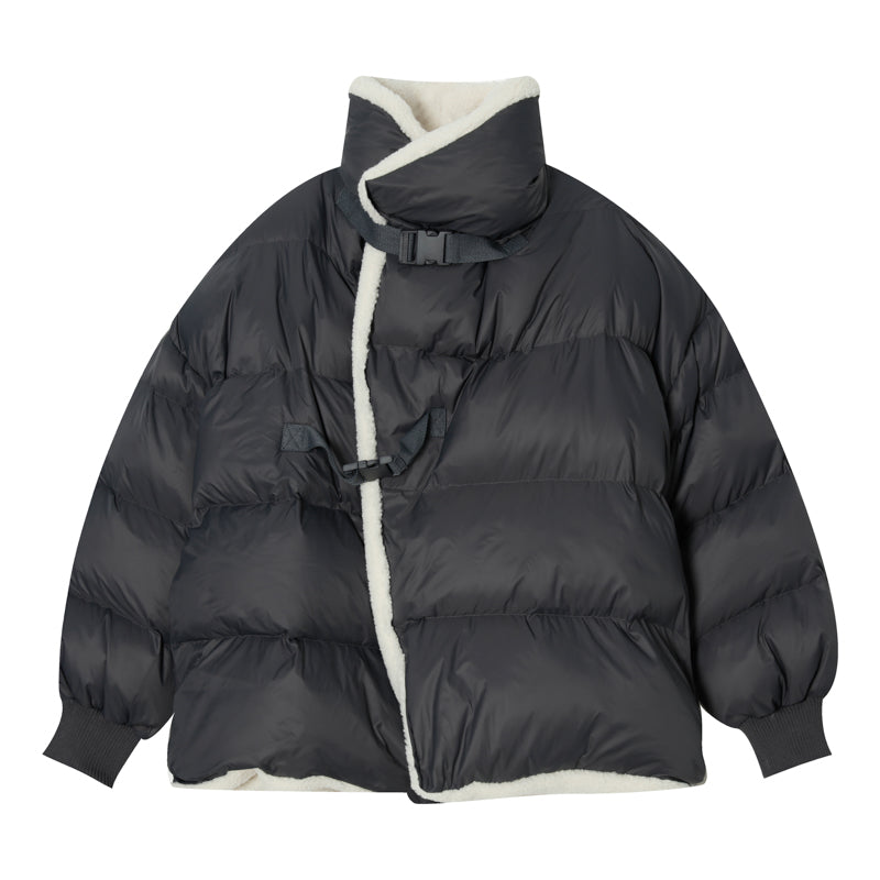 Donclickin Minimalist Shearling Cotton Jacket – Korean Oversized Turn-Down Collar