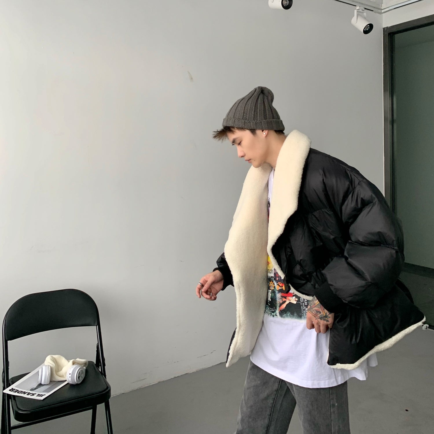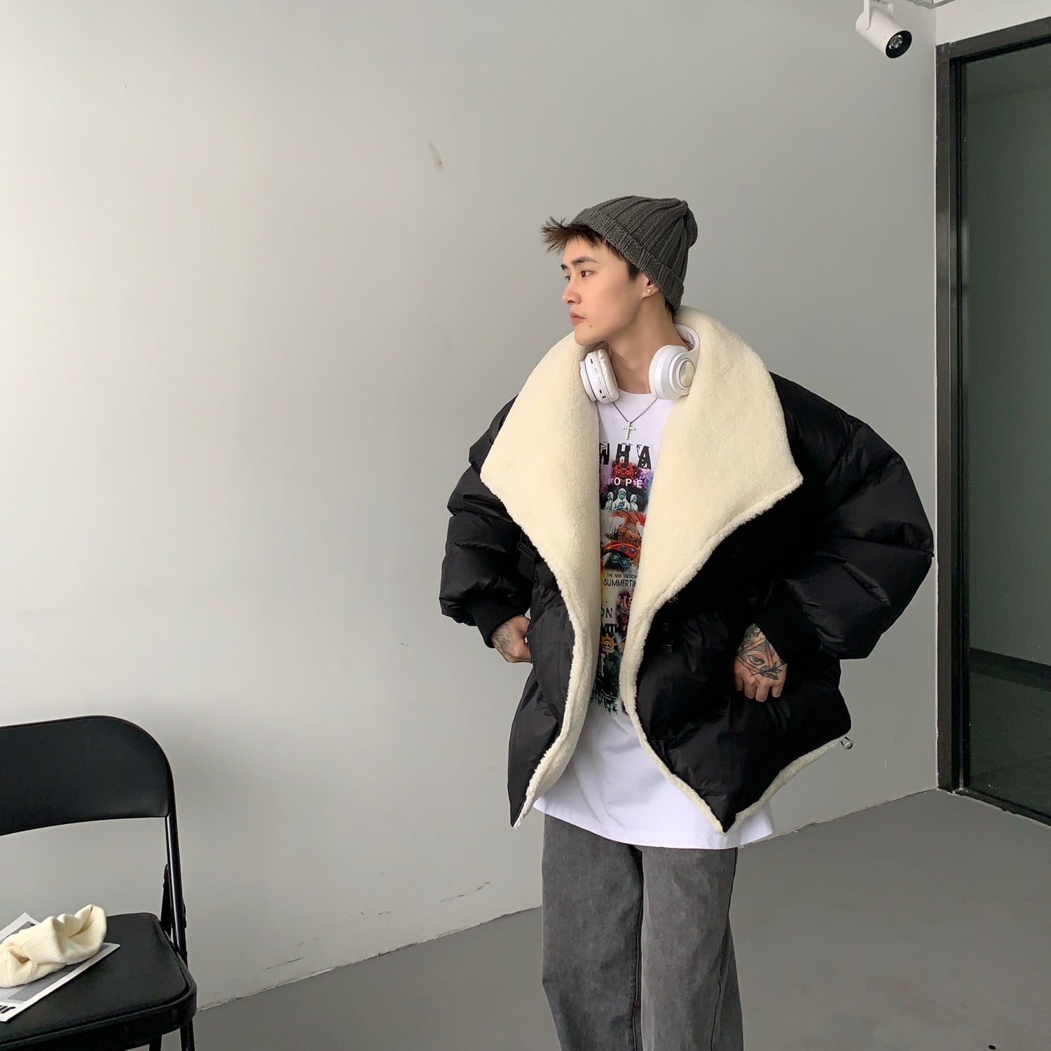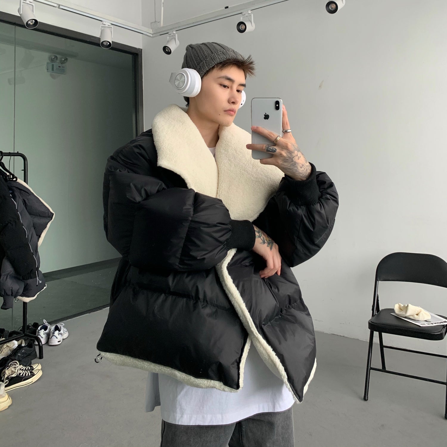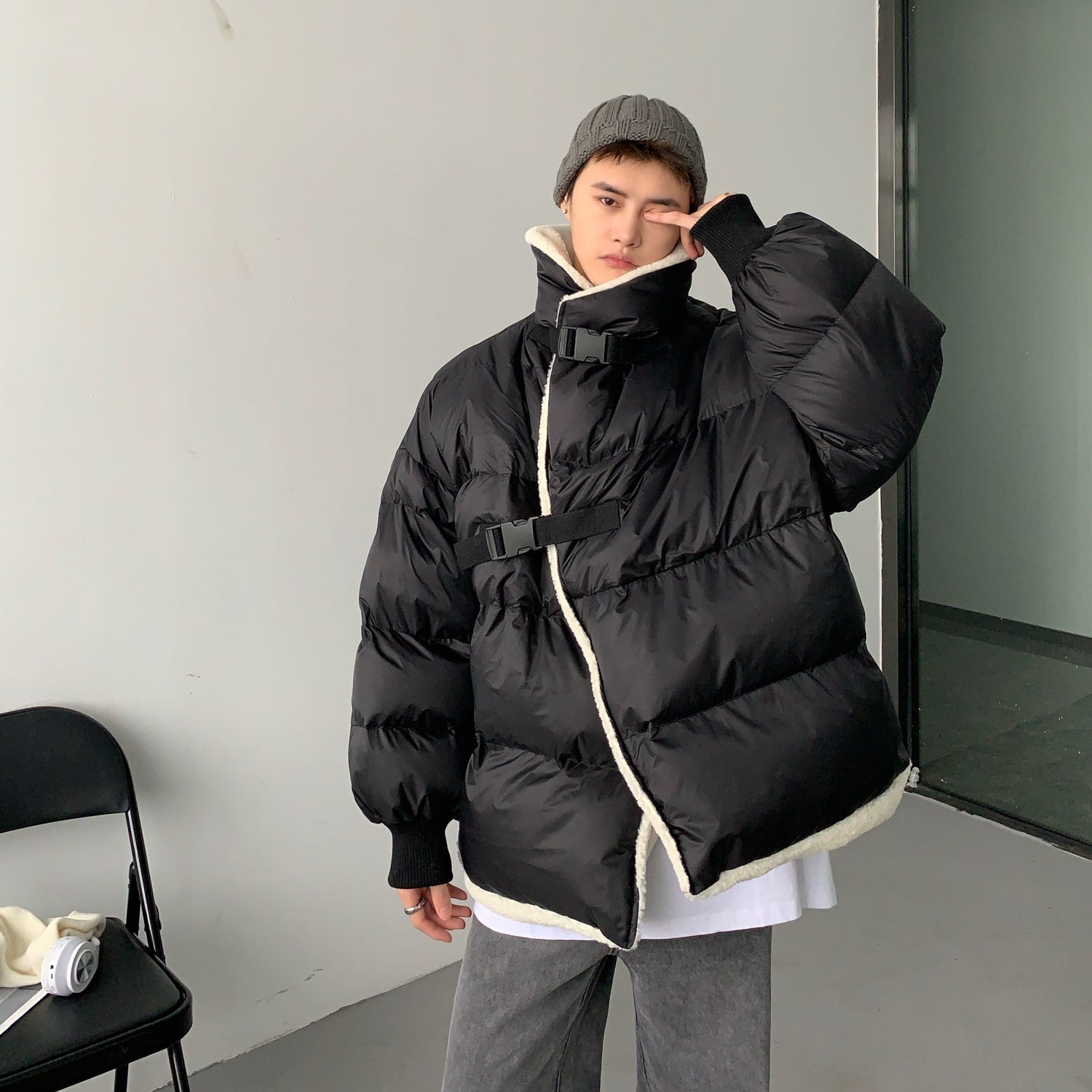 Donclickin Minimalist Shearling Cotton Jacket – Korean Oversized Turn-Down Collar