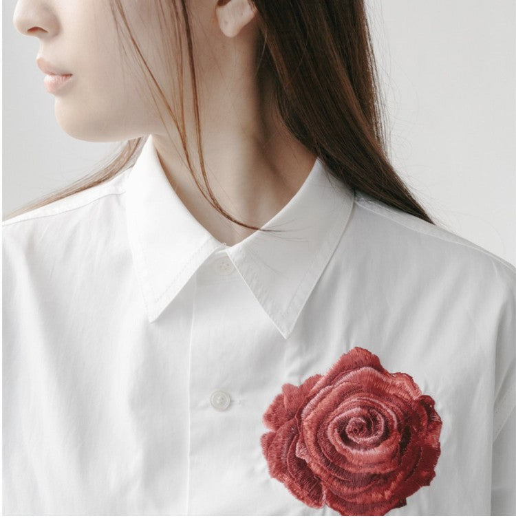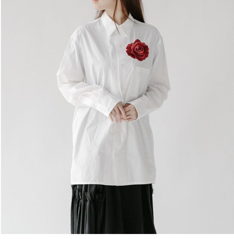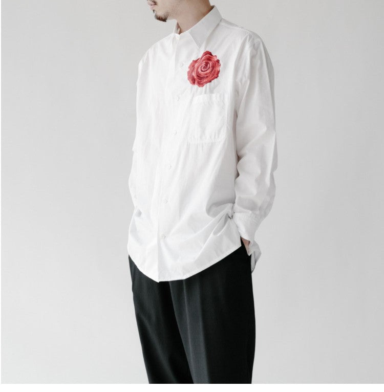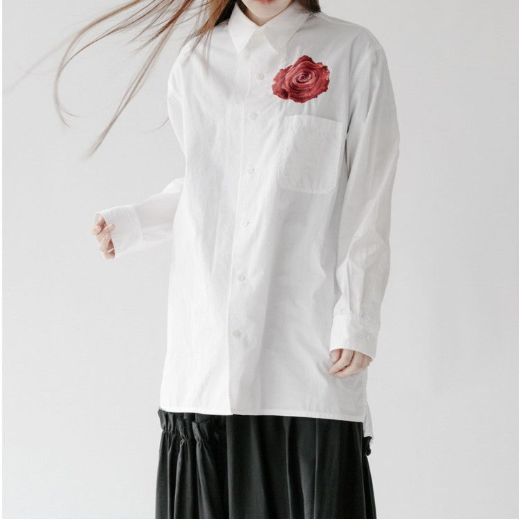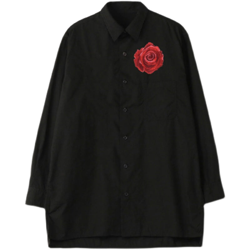 Donclickin Yohji Yamamoto Floral Embroidered Shirt - Night Blooming Rose Cotton