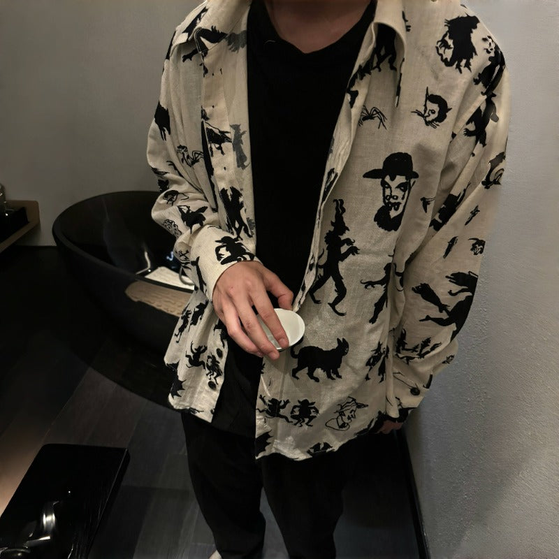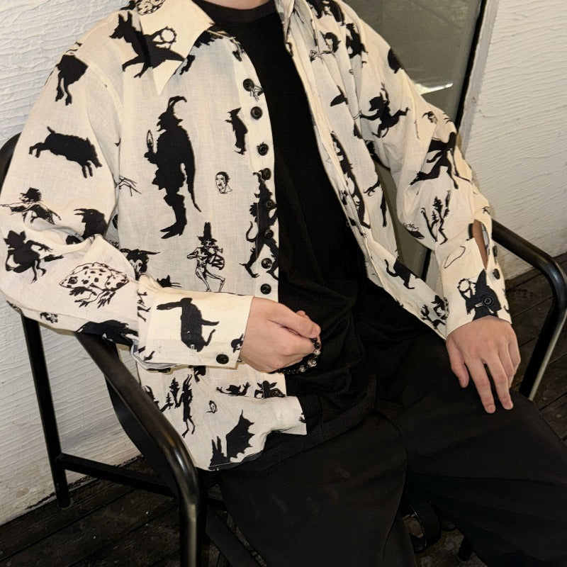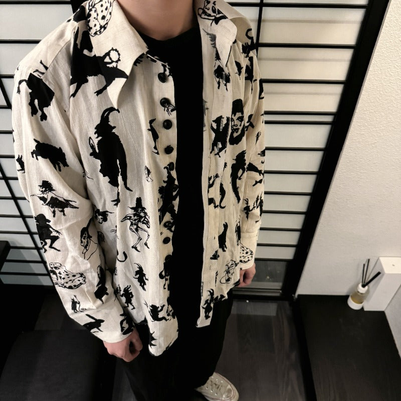 John Alexander Skelton Devil Seal Antique Fabric Shirt Cotton Shirt Horn Buttons