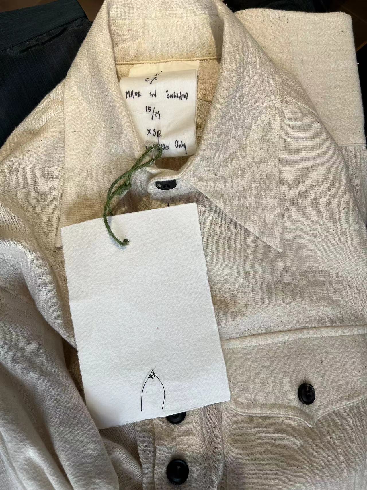 This handcrafted John Alexander Skelton Vintage JAS Artisan Cotton Shirt features horn buttons, providing a unique touch to a classic design. Made with expert craftsmanship and high-quality materials, this shirt exudes sophistication and timeless style. Elevate your wardrobe with this artisan piece, perfect for any occasion.