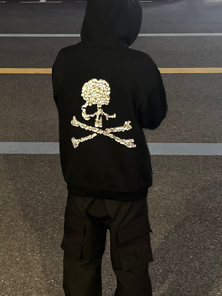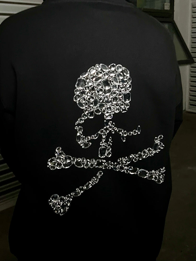 MASTERMIND Heavyweight 600g Acrylic Diamond Skull Hoodie Handmade MMJ Sweatshirt