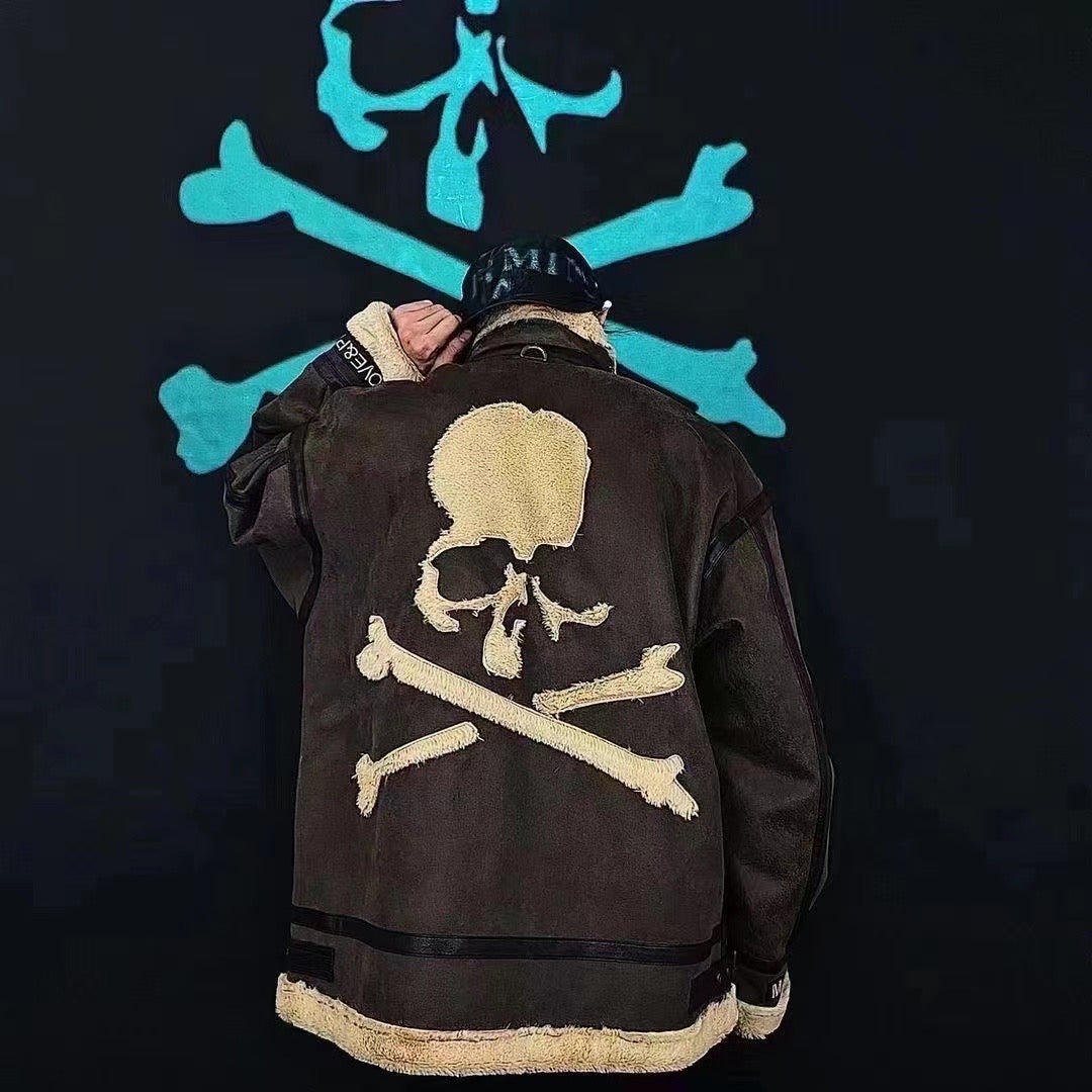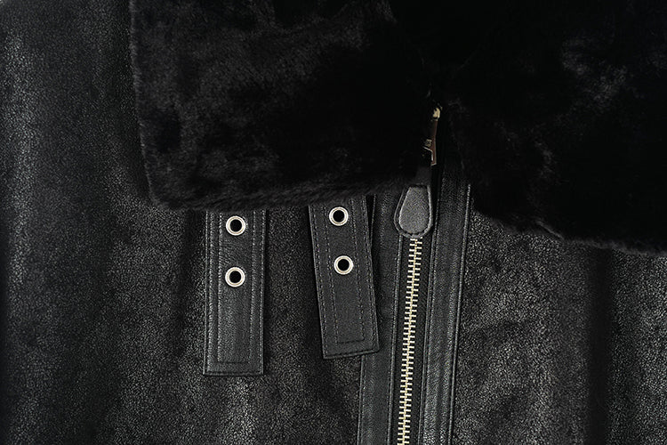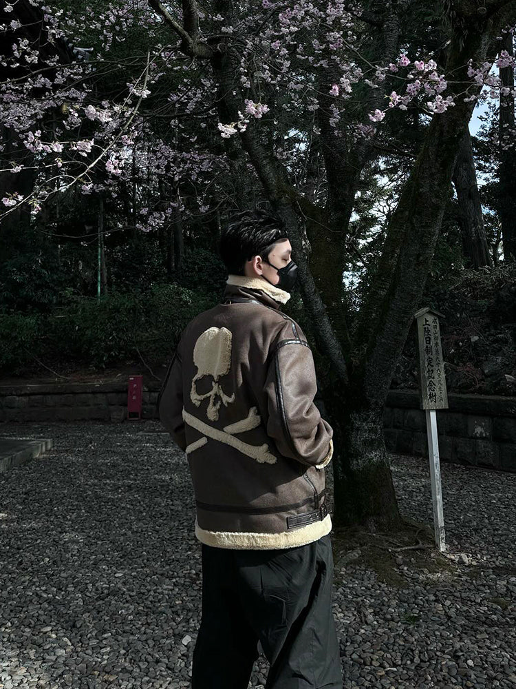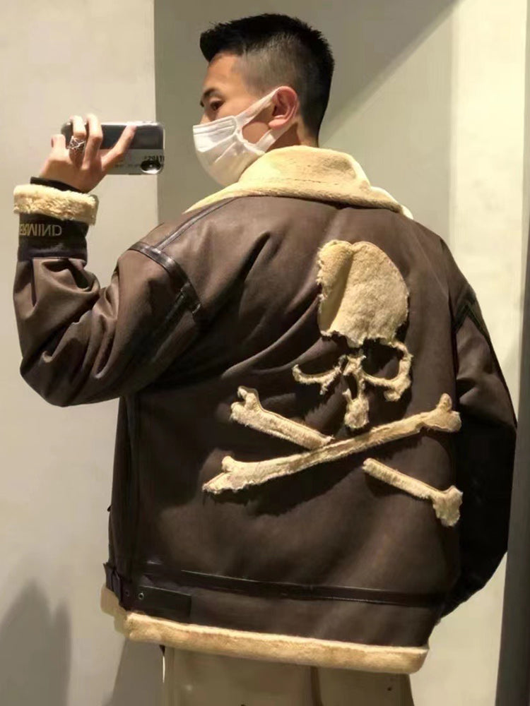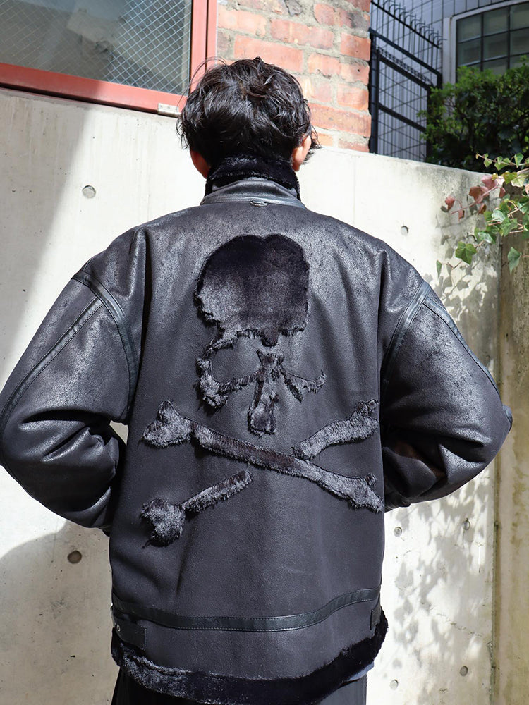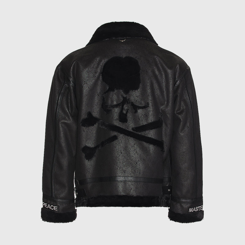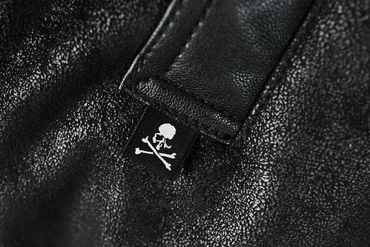 MasterMindOnline Gothic Skull B3 Aviator Flight Jacket - Mink Fur Leather Blend
